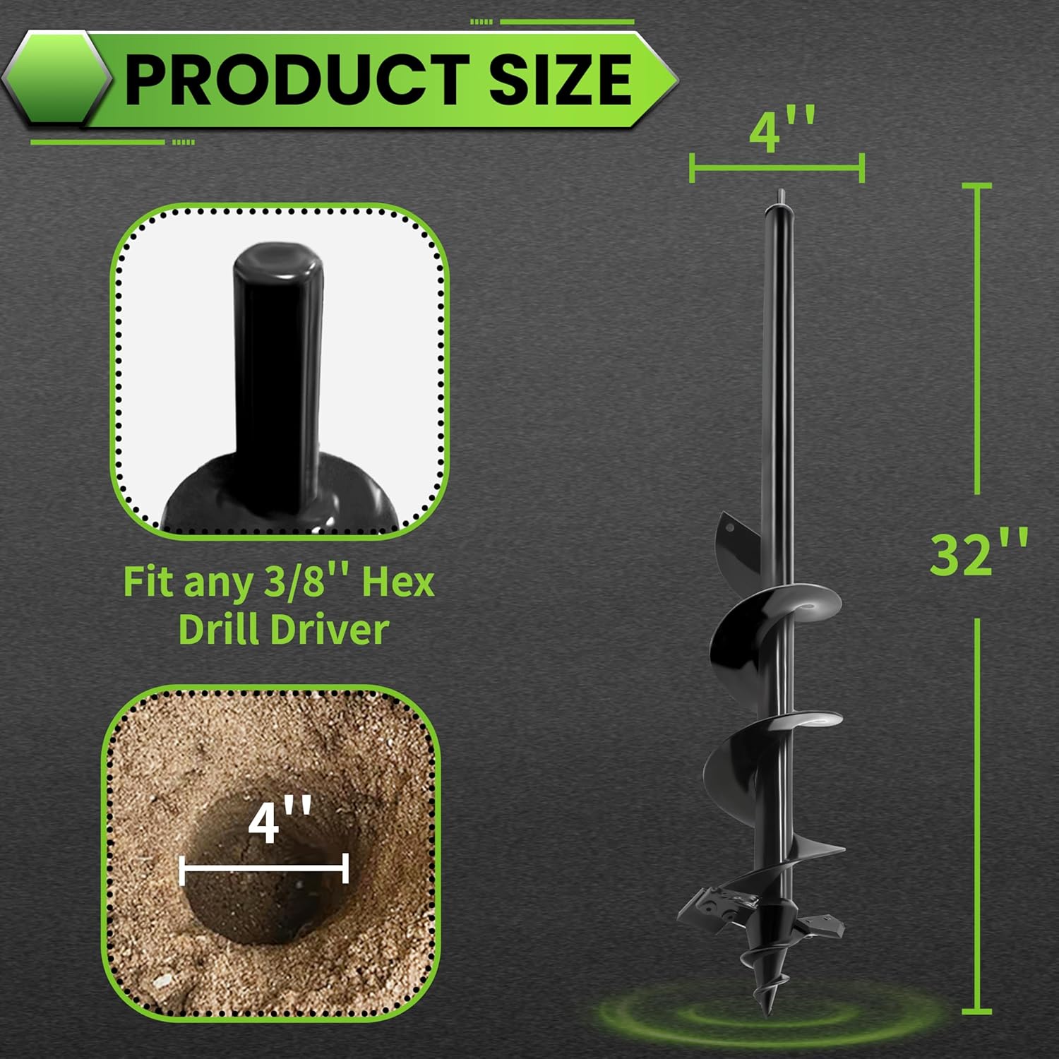 SYITCUN Auger Drill Bit for Planting - 4"X32" Heavy-Duty Post Hole Auger - Auger Post Hole Digger for Fence- 3/8" Hex Drive Drill