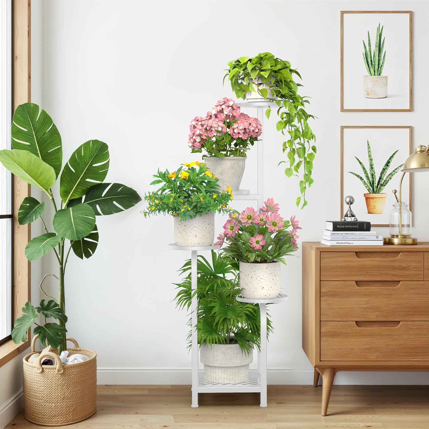 - 【Thrive with Sunlight & Air】 Five-tier staggered layout ensures optimal sun exposure and airflow for every plant, promoting lush growth (great for sun-lovers!). The open, tiered plant stand design beautifully showcases your greenery collection while keeping foliage healthy