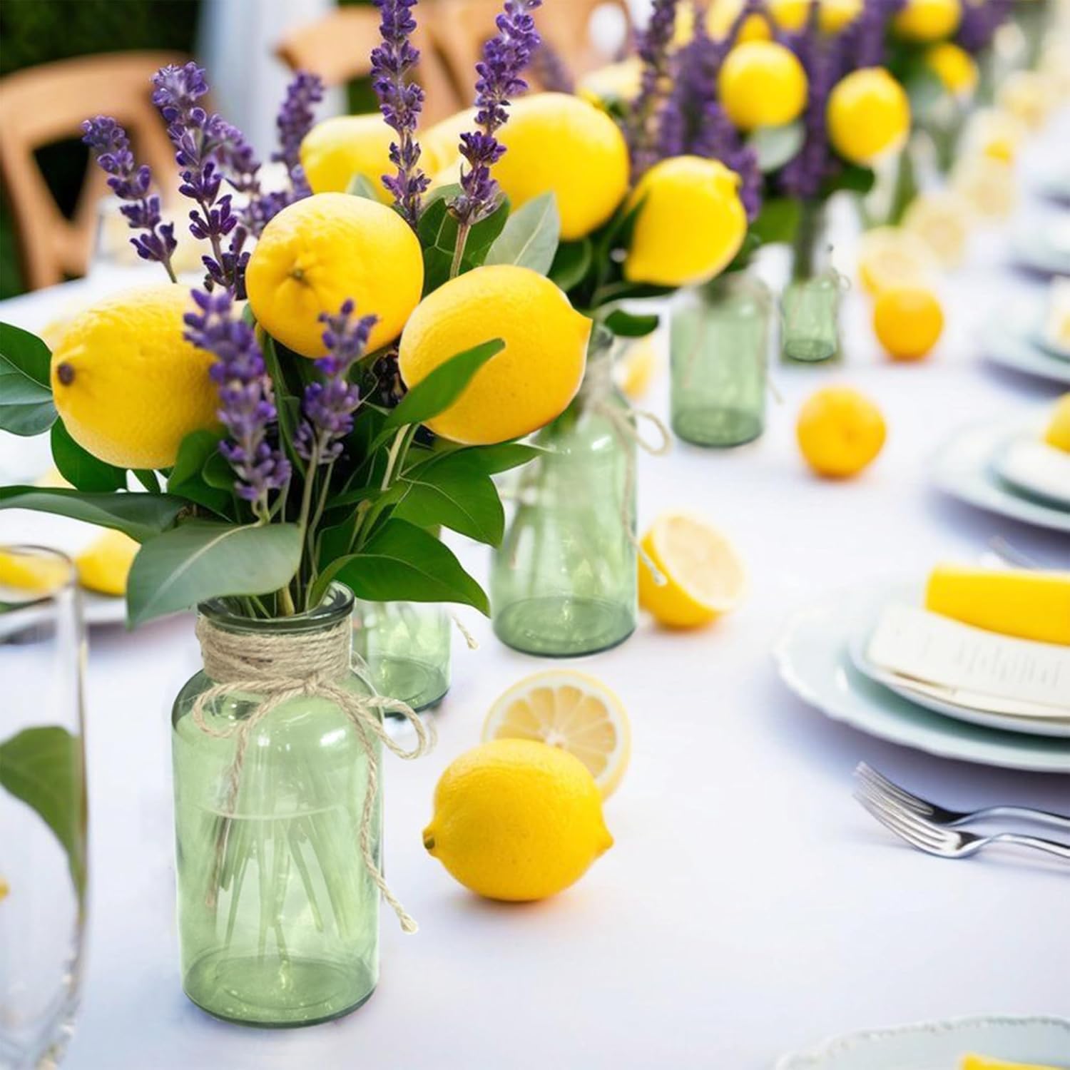 Vintage Glass Flower Vase,6 Pack Green Farmhouse Glass Centerpiece Vases Mason Jars for Weddings, Parties & Home Decor Bulk (6,Green)