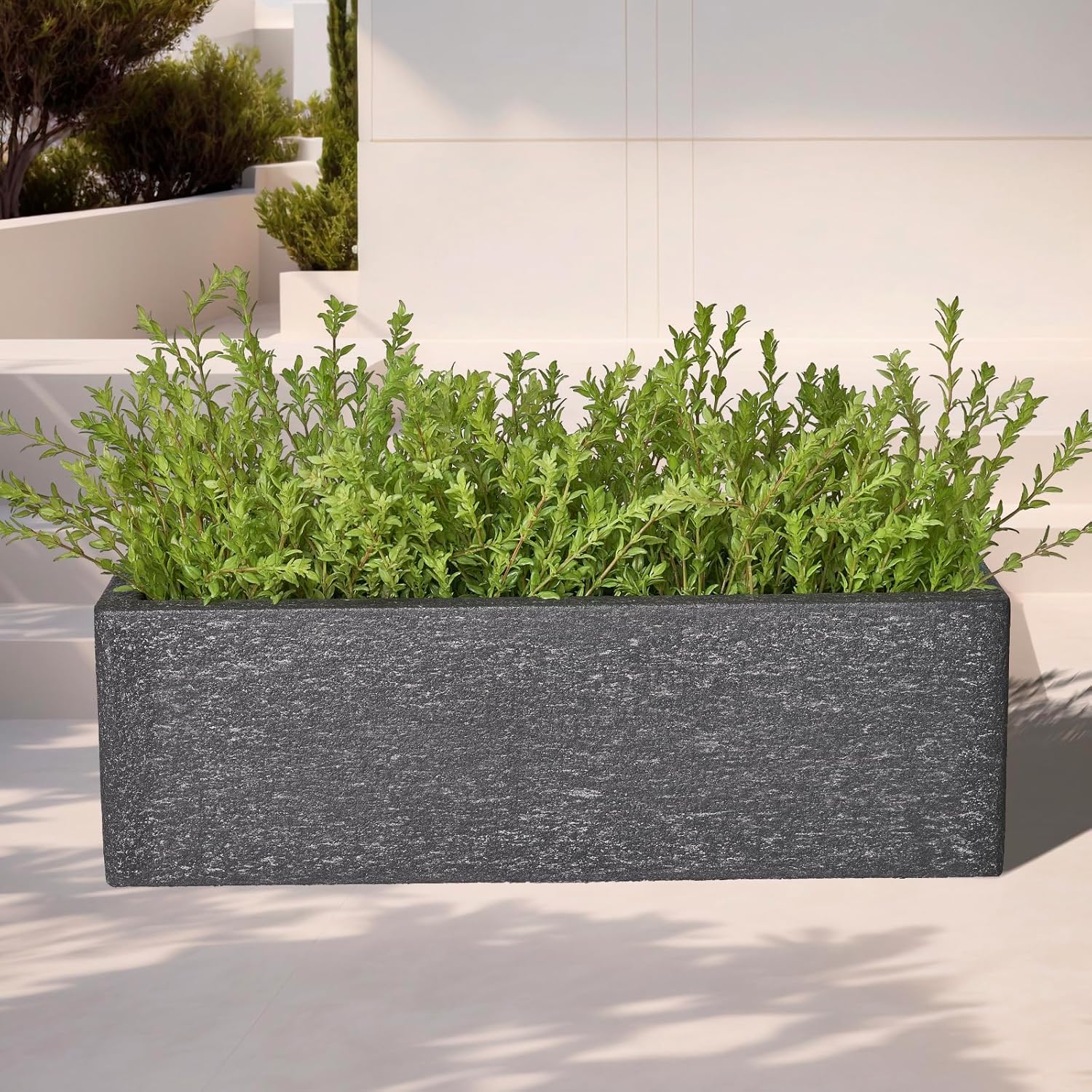24 Inch Rectangular Concrete Planter,Durable All-Weather Use with Drainage Holes,Large Rectangular Planter for Outdoor Indoor Plants