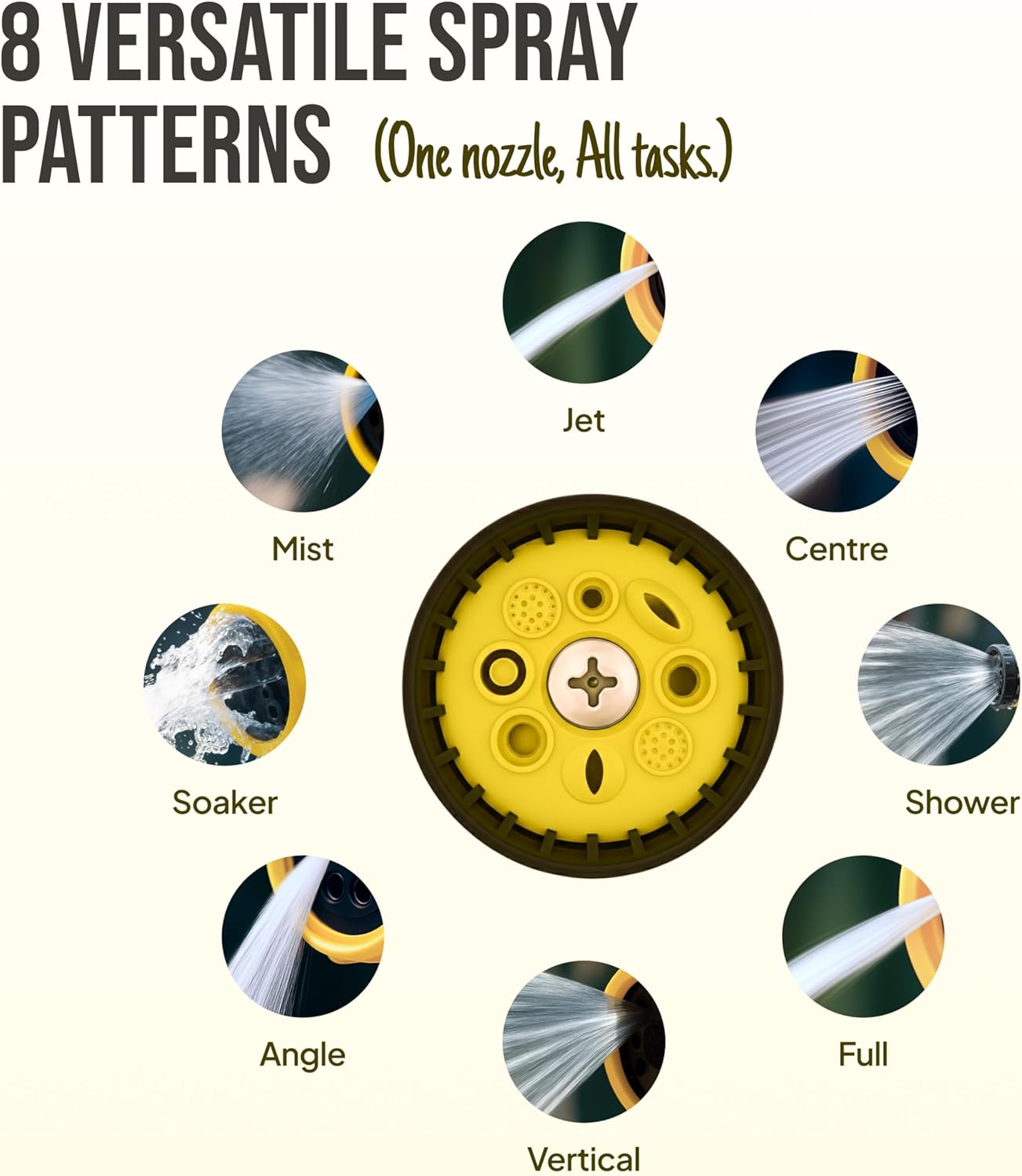 - 8 PRECISION SPRAY PATTERNS – Easily switch between mist, shower, jet, cone, and more. Perfect for gardening, car washing, pet cleaning, and patio rinsing.