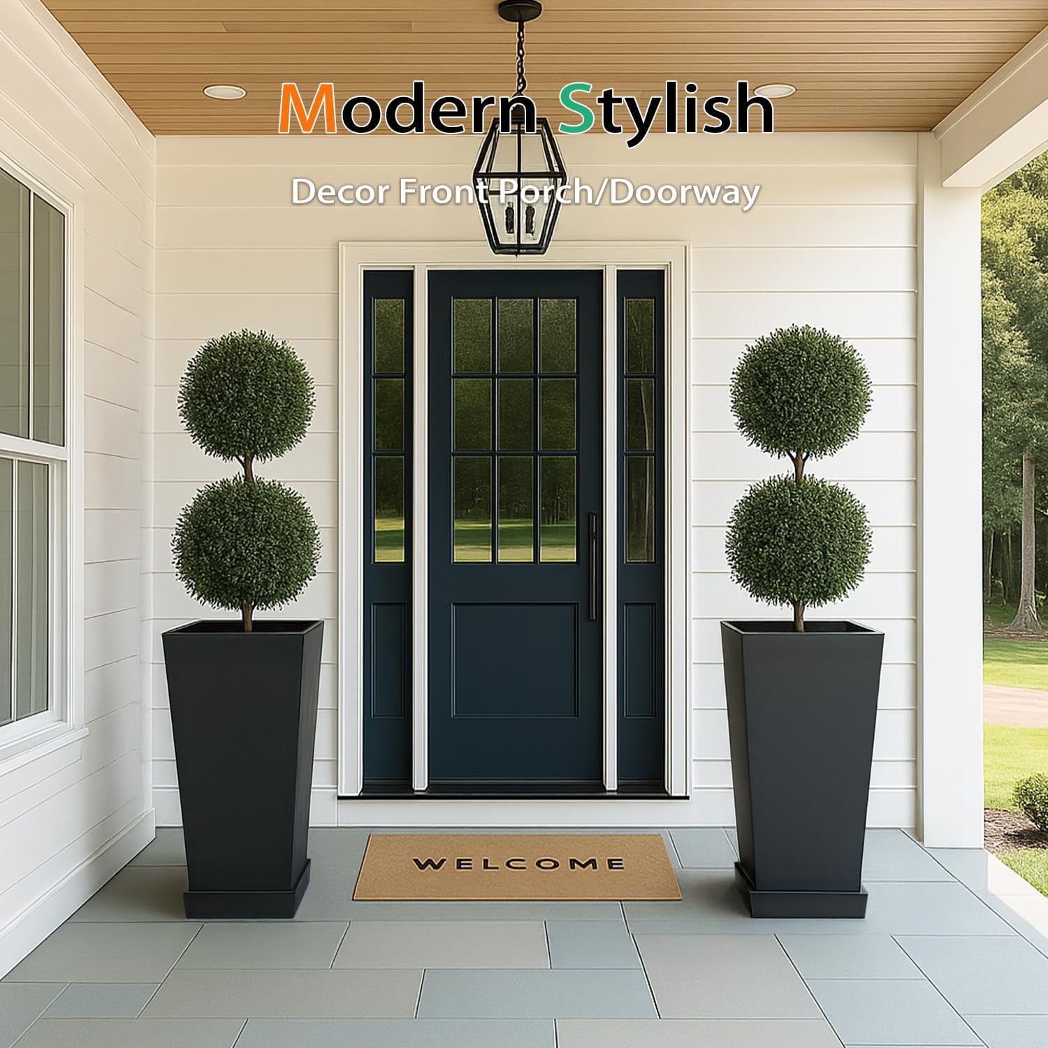 Tall Planters for Outdoor Plants, Large Resin Flower Pots with Saucers for Garden, Front Porch, Patio, Indoor - Set of 2 (Black, 34 inch - 2 Pack)