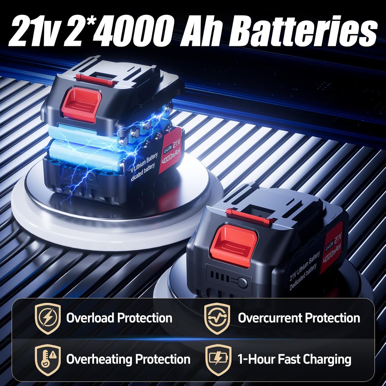 - β‘ 2 x 40000mAh BATTERIES-Mini leaf blower cordless is equipped with two 4000Ah high-capacity batteries and a quick charger. Rechargeable blower can operate continuously for 30 minutes, and the quick charger can rapidly recharge the batteries. No longer do you need to worry about battery life, allowing you to efficiently maintain your garden and backyard anytime, anywhere.