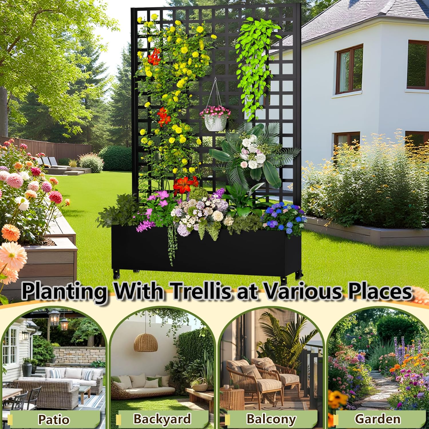 - 【Privacy Screening & Decorative Appeal】This metal planter box with trellis doubles as an elegant privacy screen and decorative fence, ideal for concealing unsightly objects like AC units, pool pumps, or trash cans, and creating natural partitions on decks, patios, and backyards, blending function with outdoor aesthetics.