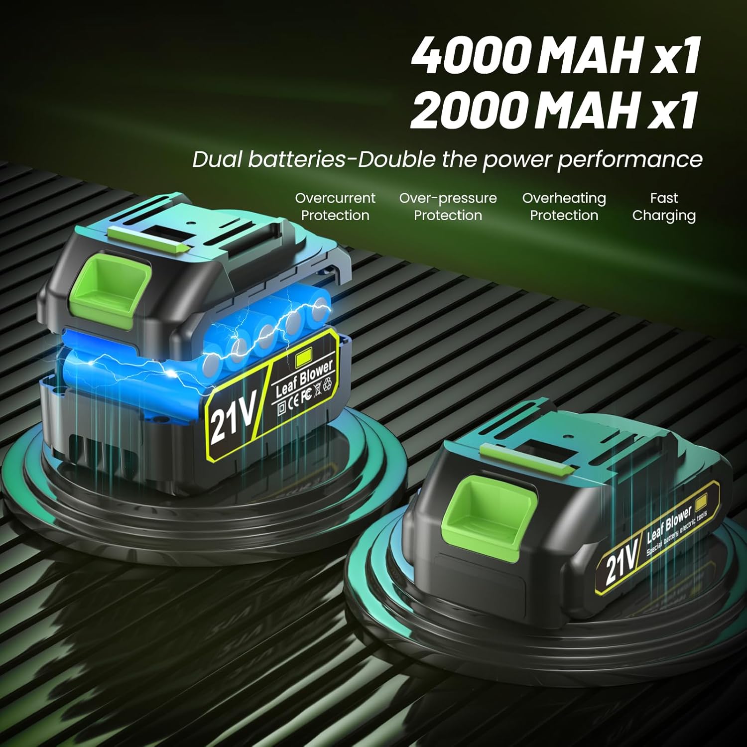 - 2*21V battery The foldable leaf blower is equipped with 1 21V-2.0AH battery and 1 21V-4.0Ah battery, and has a fast charger, which can work continuously for 40 minutes. You don't need a full charge, the fast charger only takes 1-2 hours to fully charge the battery. With this leaf blower, you can take care of your garden and backyard more effectively.
