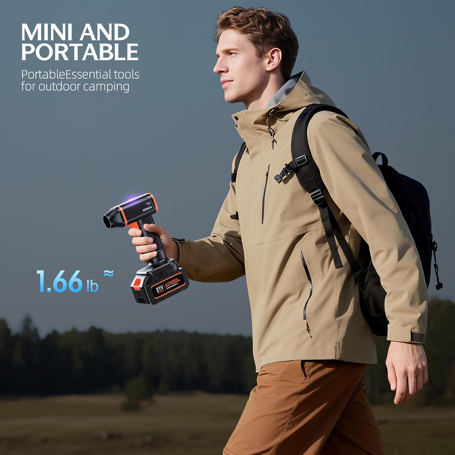 - 【Lightweight & Multi-Scene Use】Weighing only 0.66 lbs, this small leaf blower cordless is easy to handle with one hand. Its detachable design ensures compact storage and portability. Perfect for clearing leaves, dust, and debris from yards, decks, garages, and porches.