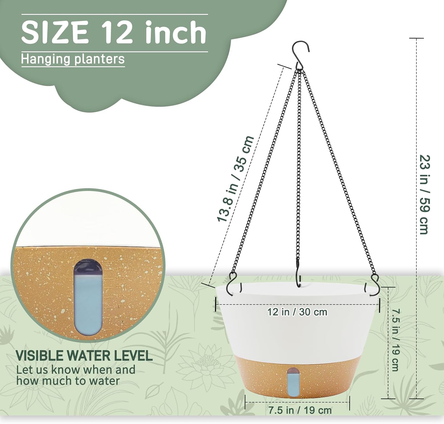 - 【Self-Watering Hanging Flower Pots with Visual Reservoir】Our hanging planters for indoor plants has an absorbent cotton rope and a removable water reservoir with a visual window to monitor the water reservoir status in real time. It ensures that your plants will not be submerged in water and prevents root rot. With our hanging flower pots, the hassle of watering your plants when you're on a business trip or traveling is gone