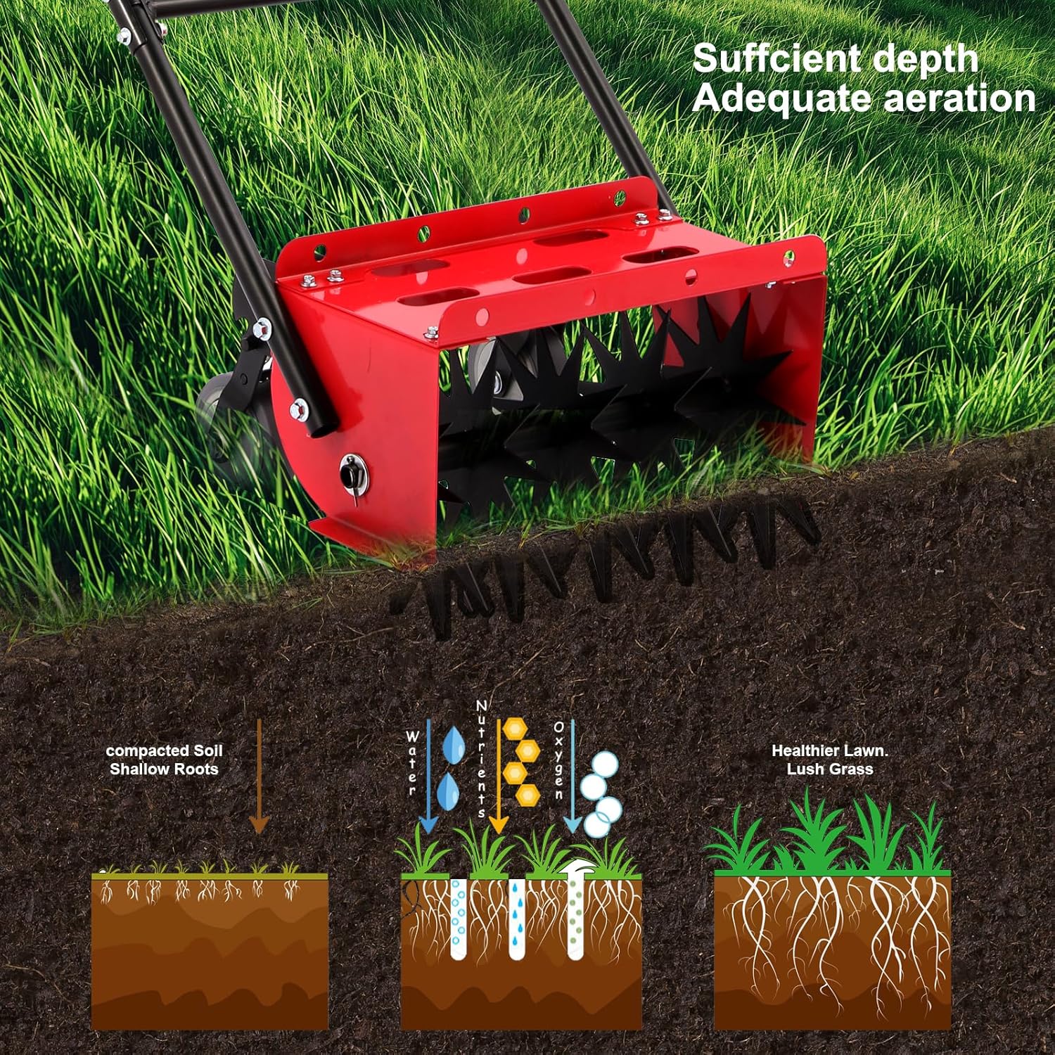 - Use Tips :If your lawn soil is hard and dry, please water the lawn first, then wait 12-24 hours before using Lineware Aerator, moist soil can make our lawn aerator work best