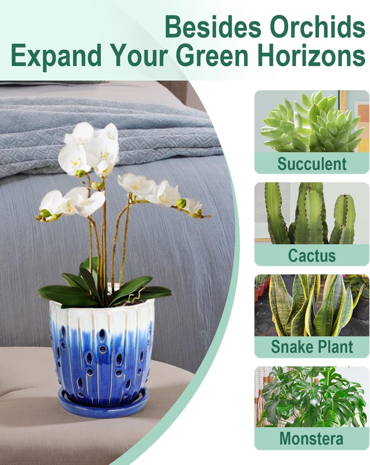 - 【Versatile and Durable】Orchid Pot with holes, this planter is ideal for orchids, succulents, cacti, ferns, and indoor/outdoor plants. The glazed finish boosts outdoor durability, while its sophisticated style elevates any setting