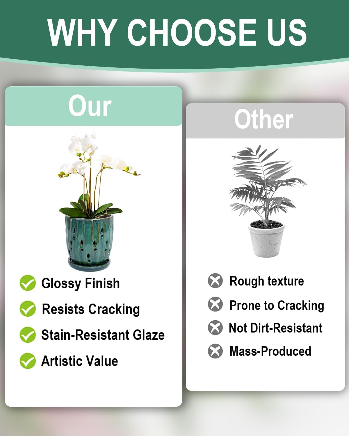 - 【Versatile and Durable】Orchid Pot with holes, this planter is ideal for orchids, succulents, cacti, ferns, and indoor/outdoor plants. The glazed finish boosts outdoor durability, while its sophisticated style elevates any setting