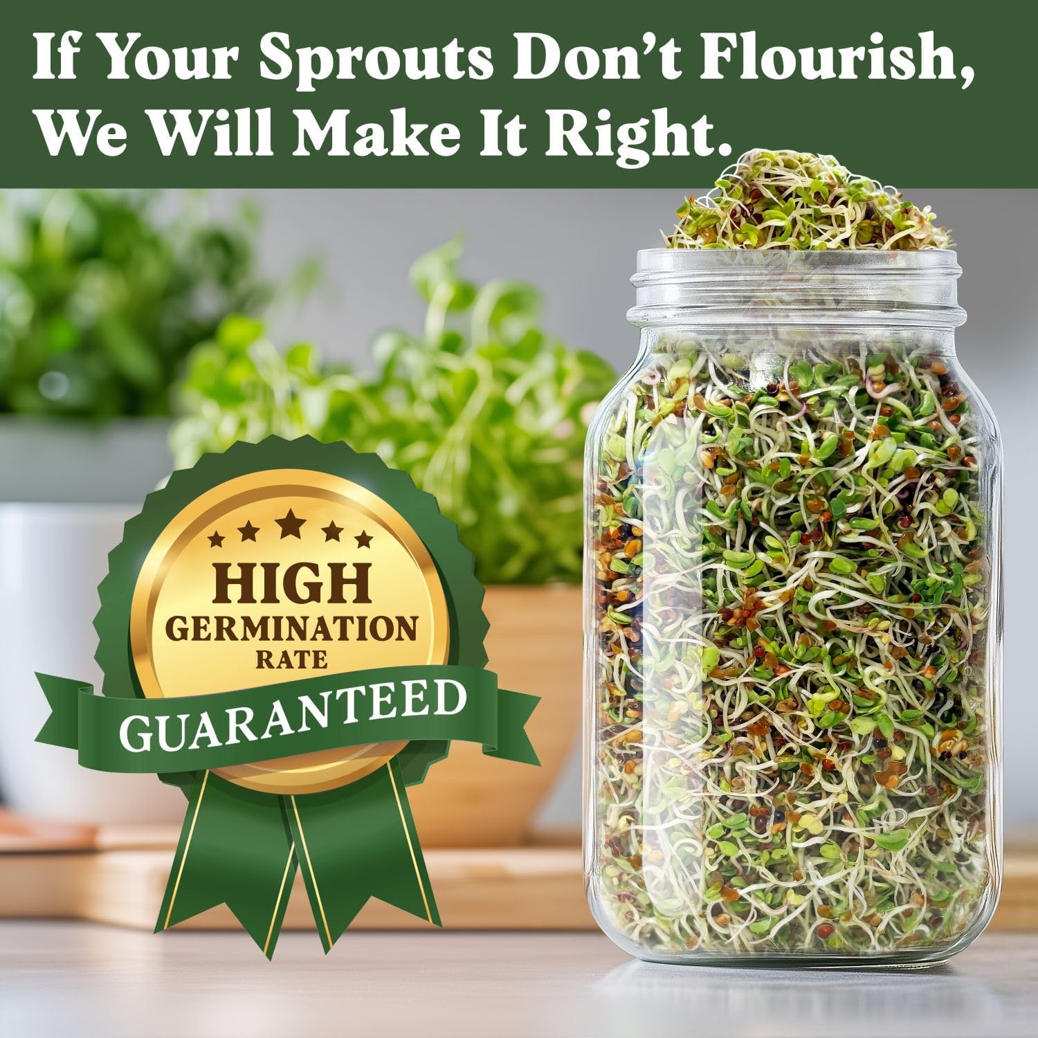 Seedboy Organic Sprouting Seeds - Longevity Blend- Non-GMO, USA Grown Microgreens Mix - Broccoli, Red Kale, Black Kale, Alfalfa - Makes Over 6 Quarts of Sprouts, 20 Servings (8 oz) (Longevity Blend)