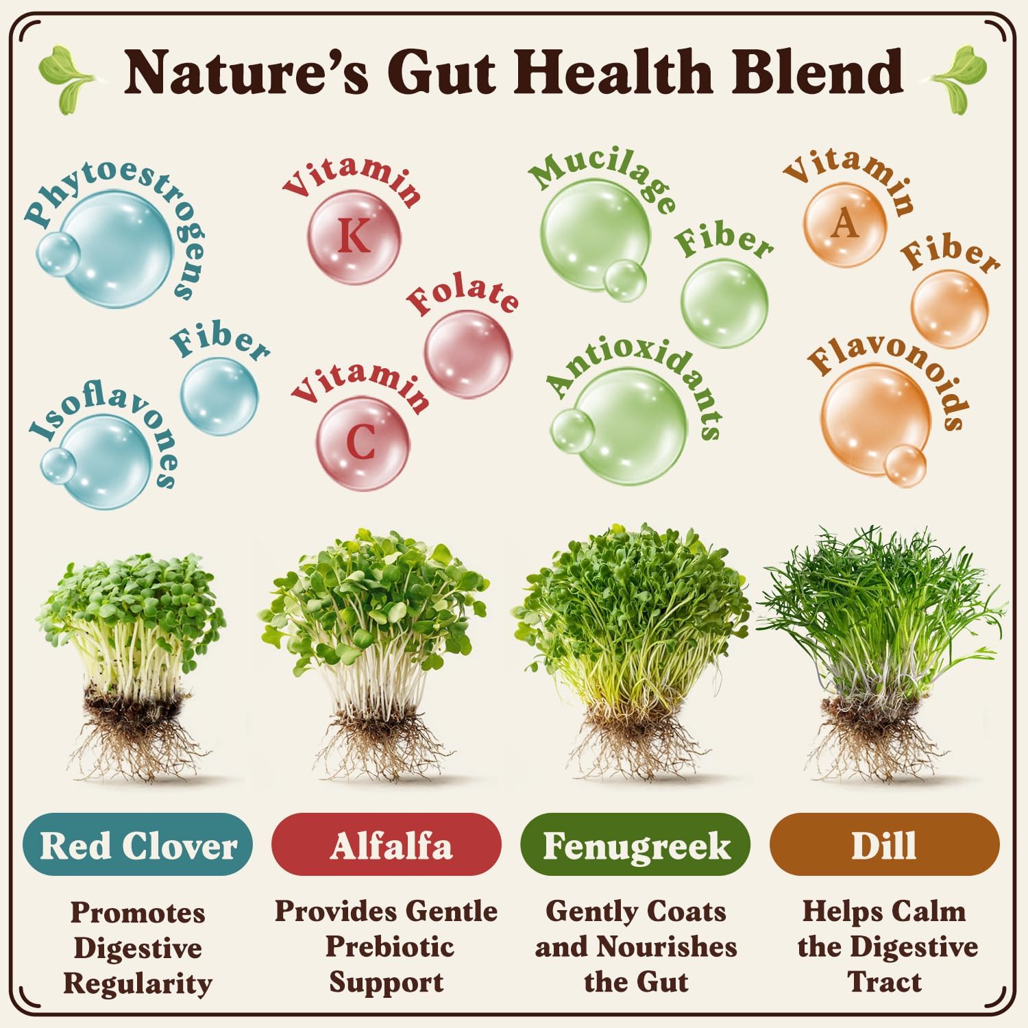 - Gut-Nourishing Sprouts in Days – Support digestive wellness naturally with Seedboy’s Gut Health Blend, featuring clover, alfalfa, fenugreek, and dill seeds—rich in fiber, prebiotics, and soothing phytonutrients that help promote healthy digestion, reduce bloating, and balance gut flora. These gentle yet powerful sprouts aid in nutrient absorption and overall gut function.
