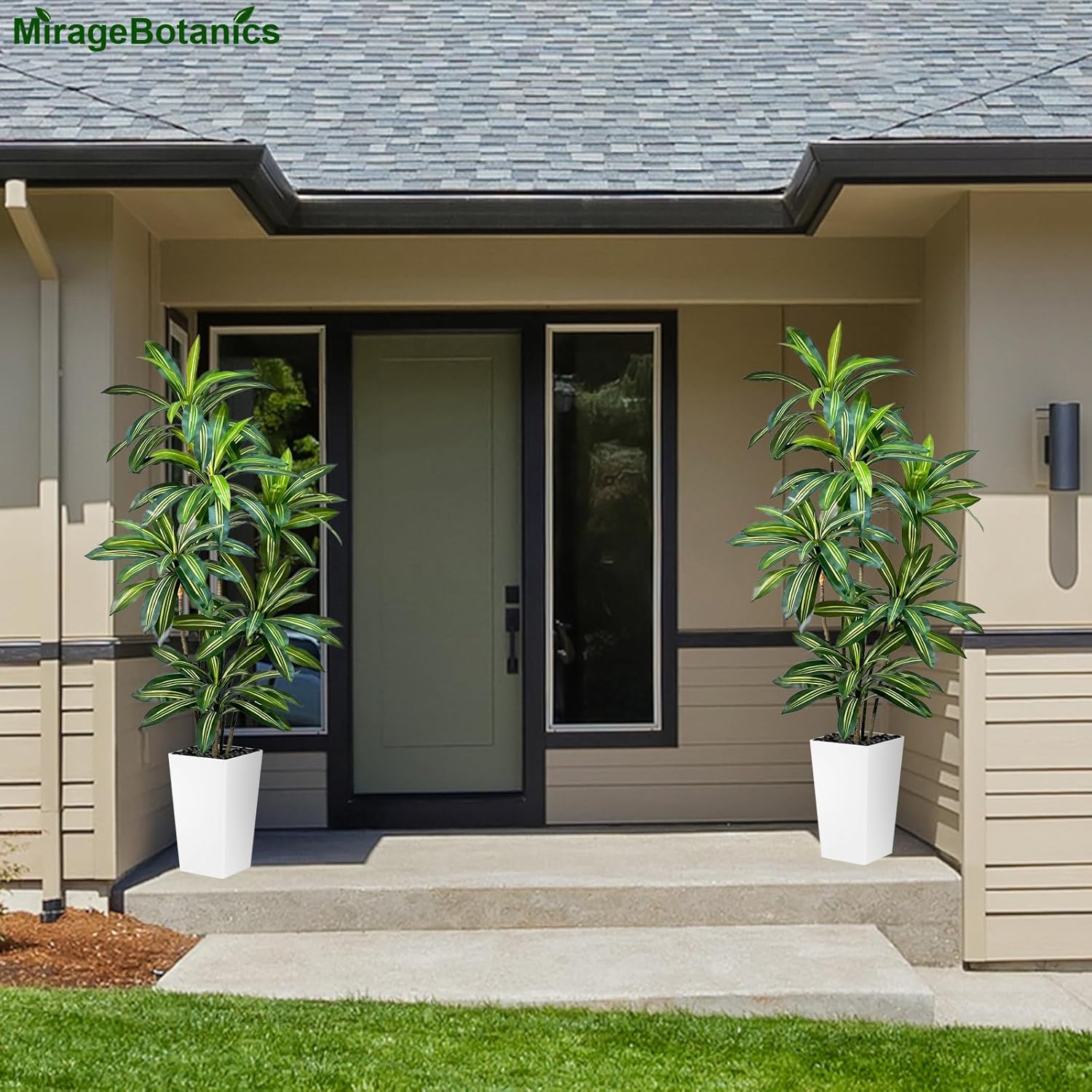 Artificial Dracaena Tree 5FT Tall Fake Plant with White Pot - Realistic Faux Dragon Tree with Tall Planter - Indoor Floor Plant for Home, Office,Mall, Living Room, Bedroom Decor (White - Planter, 5ft)