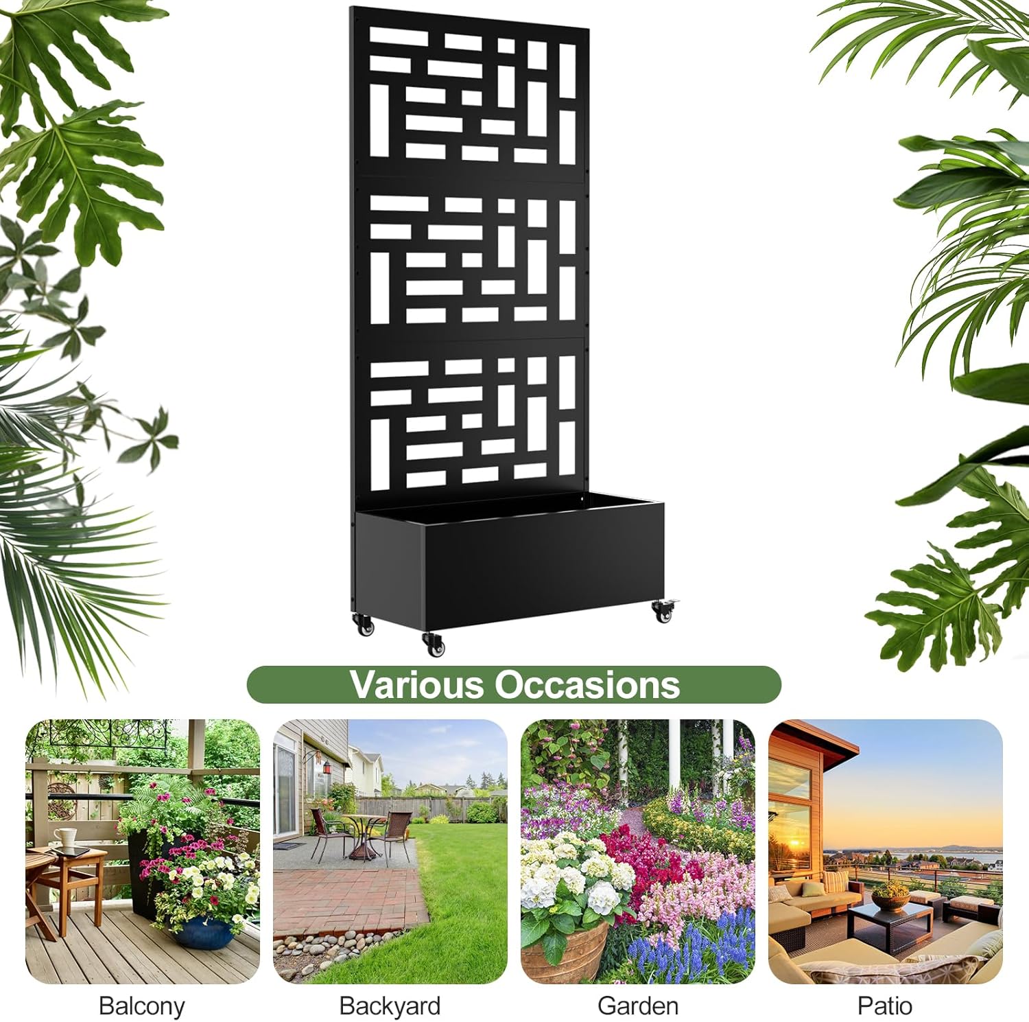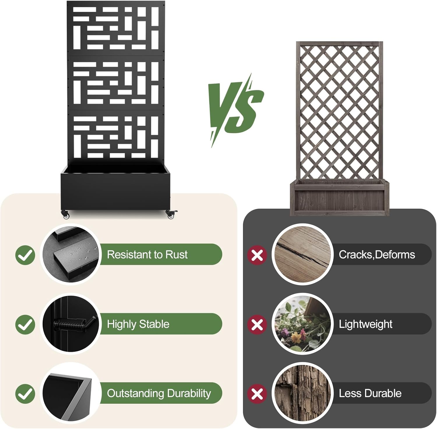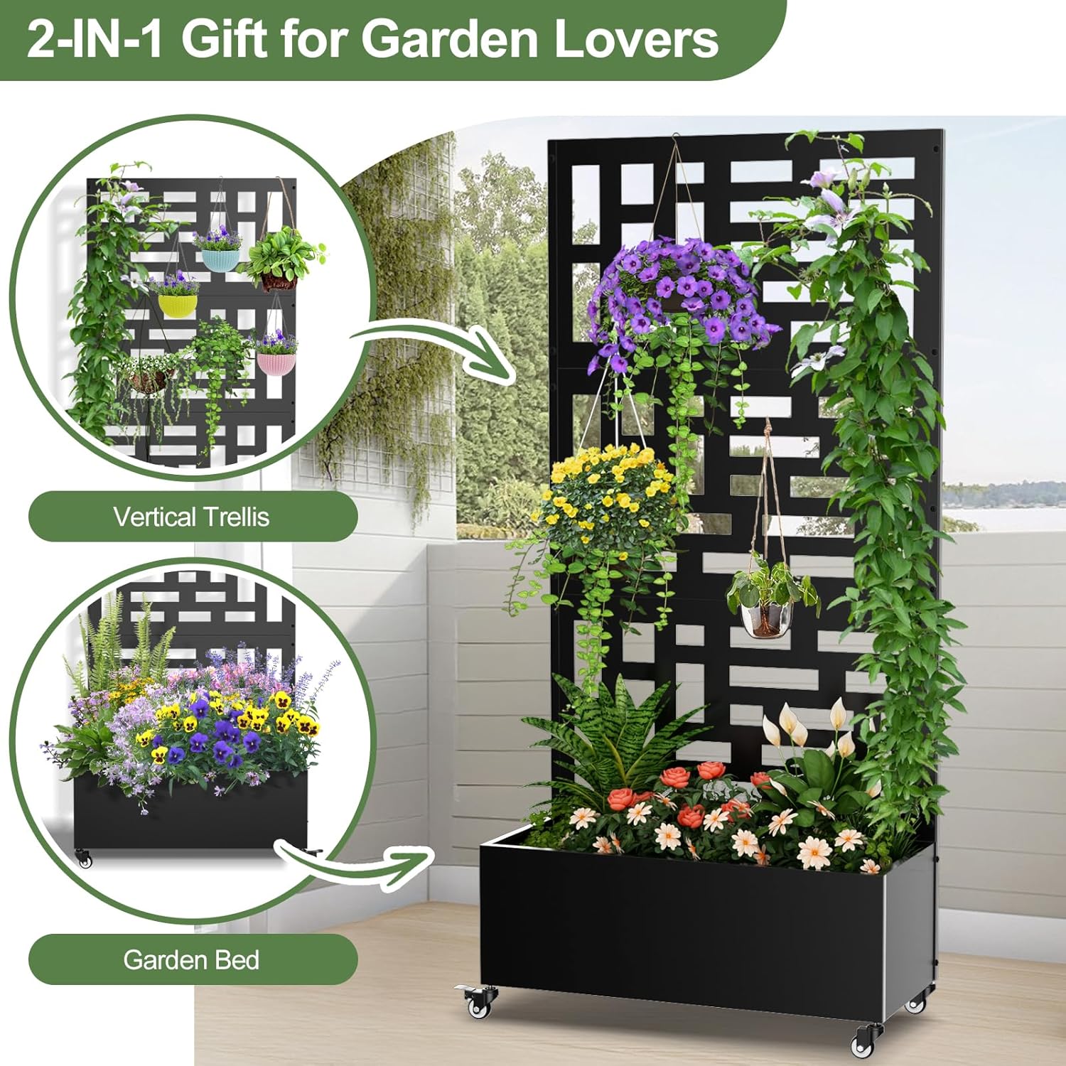 - MULTI-PURPOSE DESIGN - This metal planter with trellis is triple-purpose, serving as an elevated bed for flowers/plants, a sturdy trellis for climbing plants, and a stylish privacy screen to beautify your outdoor living space. With its adaptable construction, it is the ultimate gardening solution for every need.