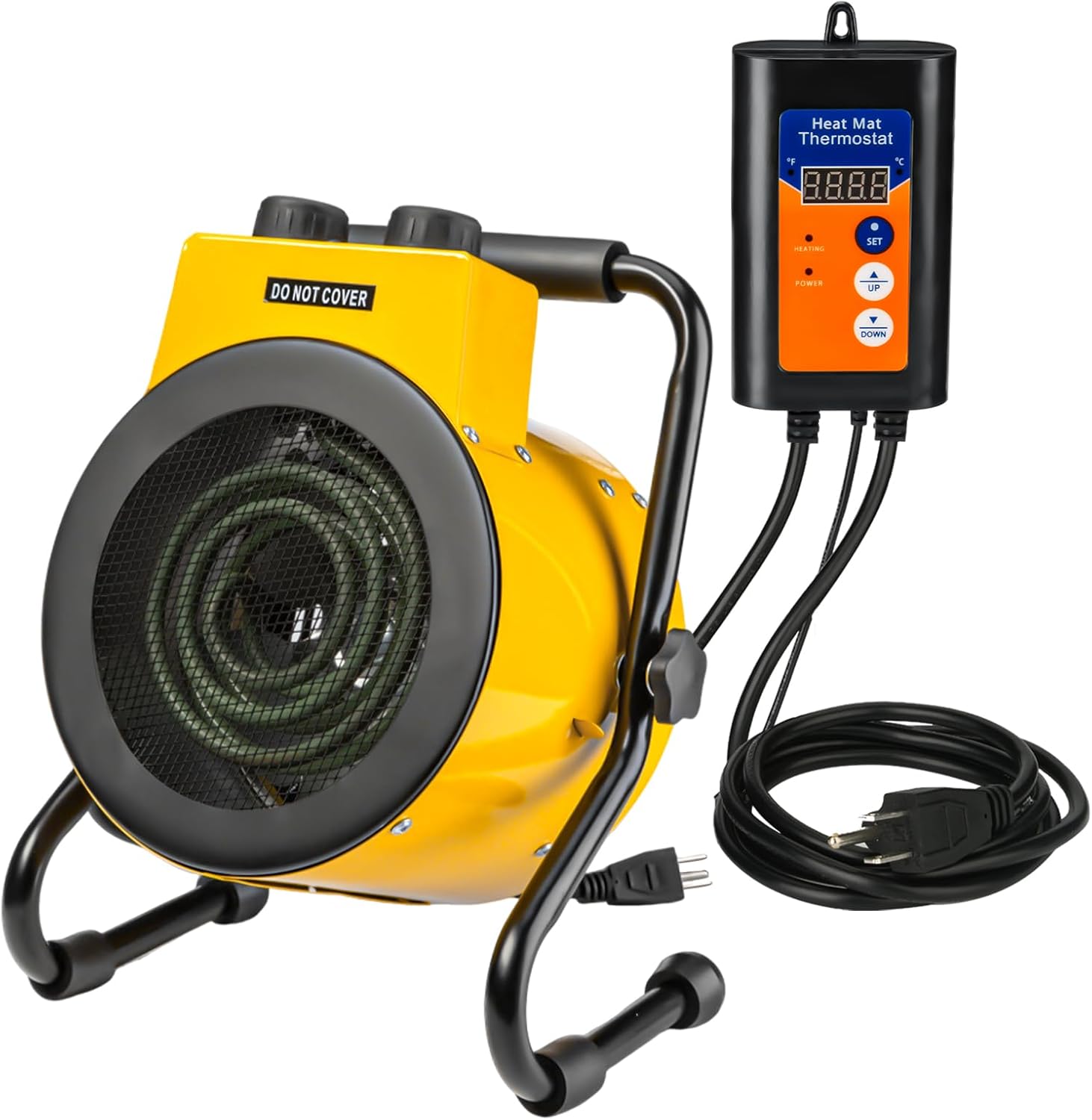 Greenhouse Heater with Digital Thermostat, Green House Heater for Plants,1500W Electric Grow Tent Heaters, Overheat Protection, Fast Heating for Green House, Flower Room, Yellow