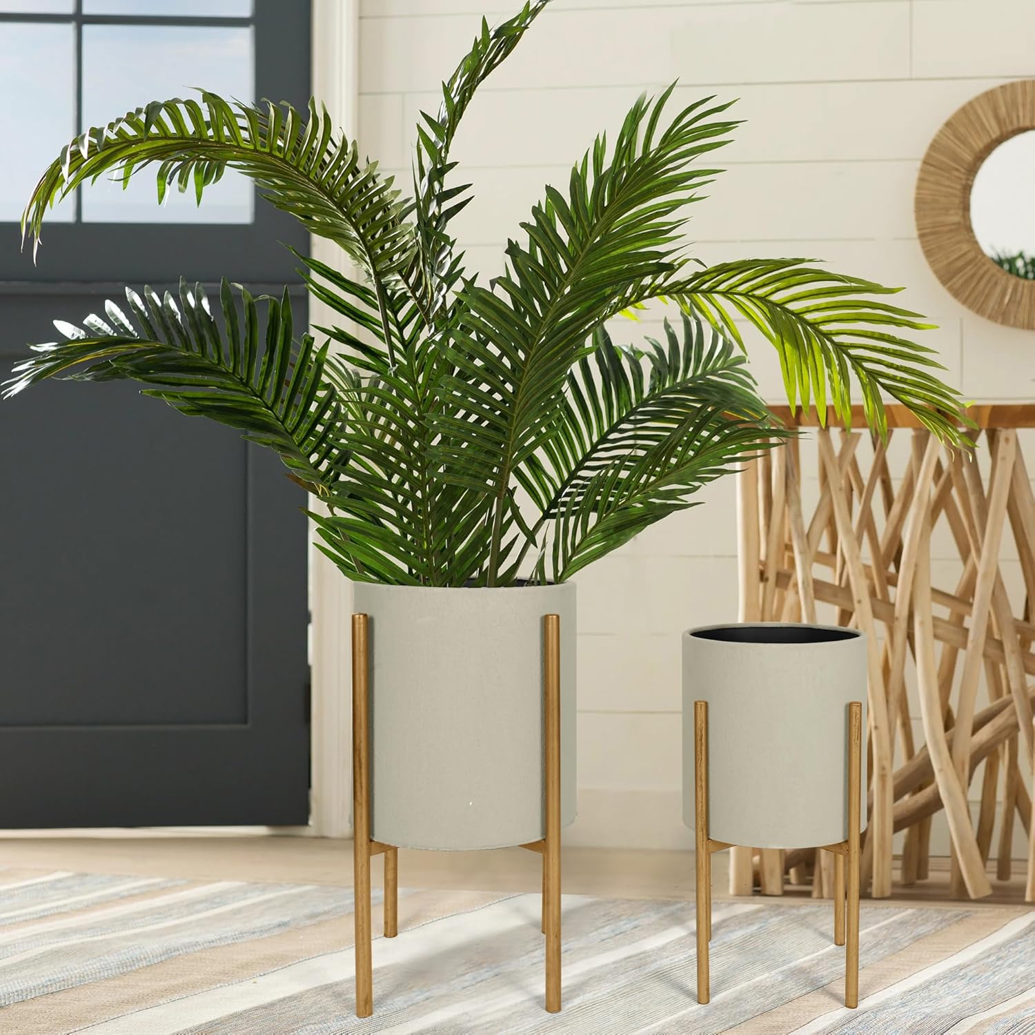 Oakrain Plants Pots with Stand, Set of 2 Planters for Indoor Plants, Modern Decorative Metal Flower Pots for Living Room, Garden, Balcony, 10"&12", Cement Gray Frosted