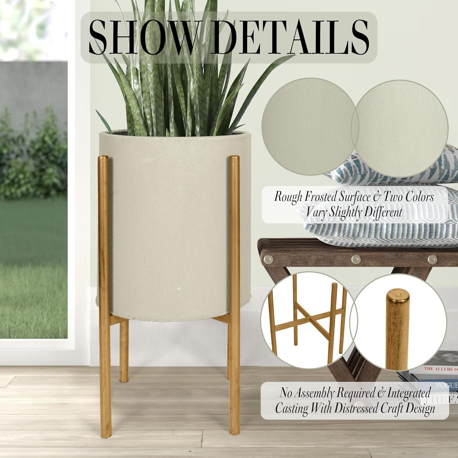 - Mid Century Planter: Golden metal stand paired with a cement gray planter for mid-century simplicity. Coated with frosted particles design is simple and atmospheric, never goes out of style. Suitable for a variety of decoration styles.