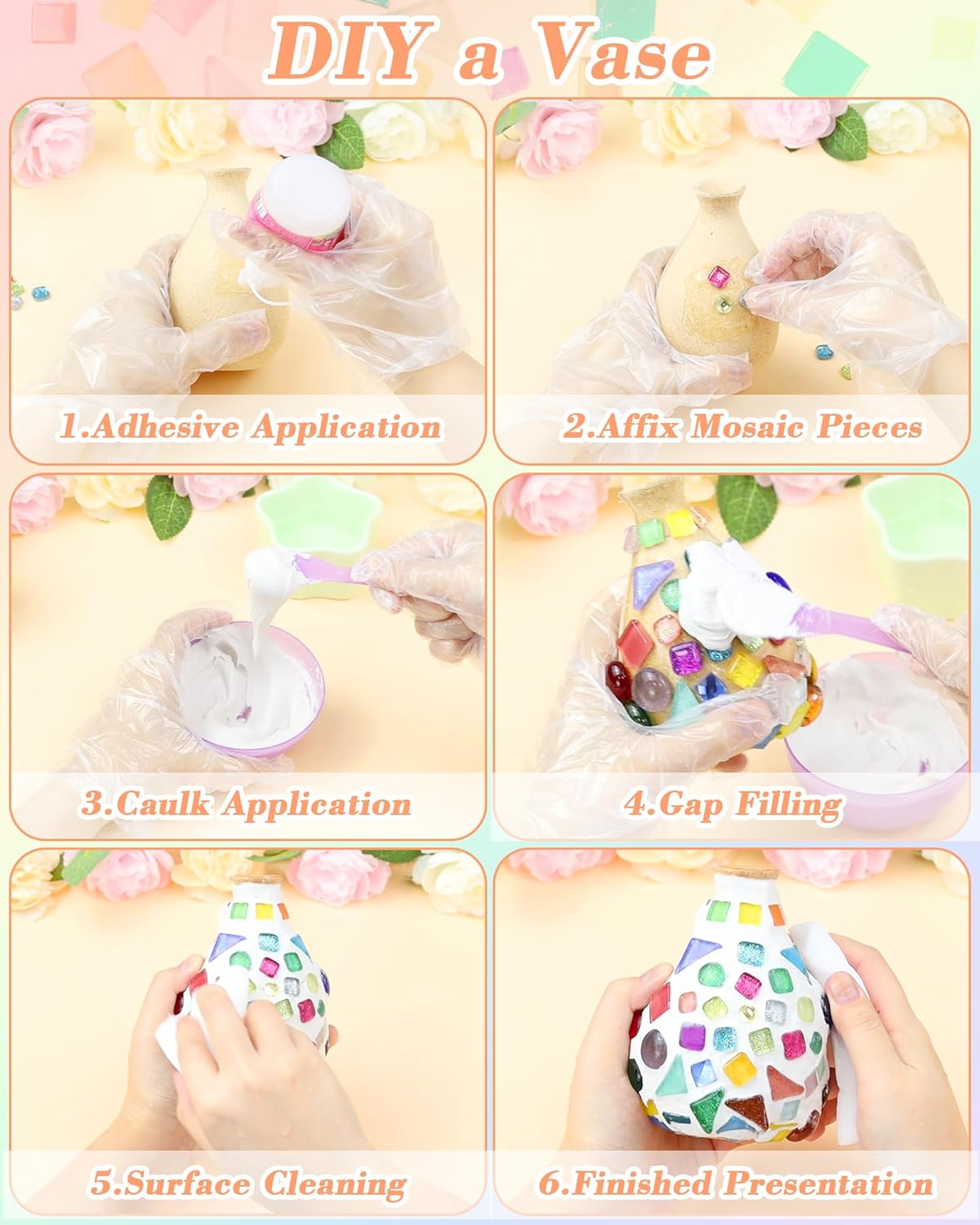- Safe & Smooth Tiles: You will receive 280 mosaic tiles (420g) in various shapes and vibrant colors. The tiles are smooth with rounded edges, ensuring safe and easy crafting, perfect for mosaic kits and mosaic tiles for crafts.