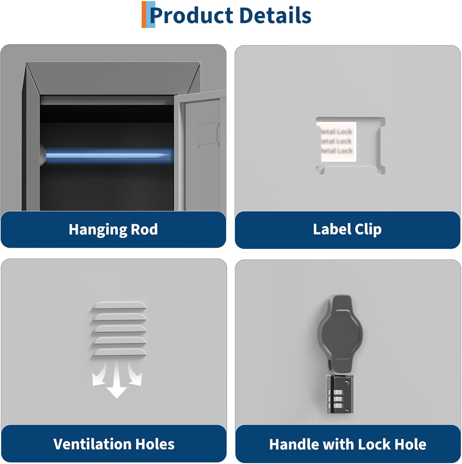 - Ventilated Design: Each metal locker door is equipped with built-in louvers that promote airflow, reducing moisture and odors to keep stored items dry and fresh