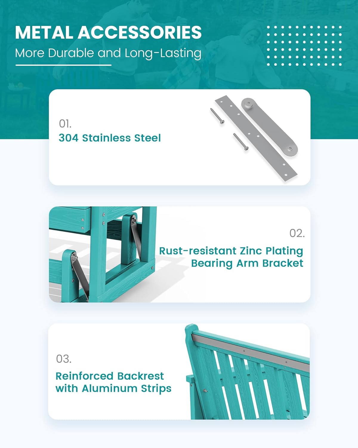 SERWALL Outdoor Glider Bench Set of 2, HDPE Weather-Resistant Swinging Bench for Backyard Garden Porch, Aruba