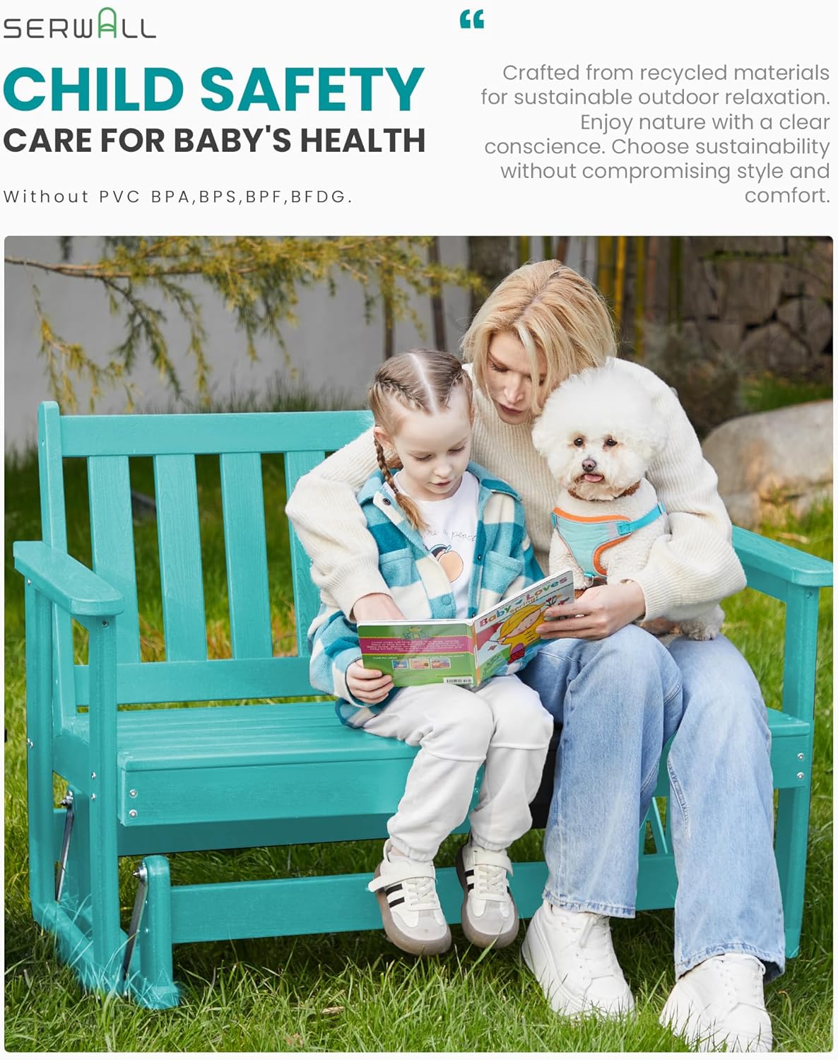 - [All Weather Resistant] Made with durable HDPE material and stainless steel hardware, the SERWALL glider rocking chair is built to withstand all weather conditions, ensuring long-lasting durability. The easy-to-clean surface and ability to swing add an extra level of comfort to your outdoor space, making it ideal for use in any outdoor setting.