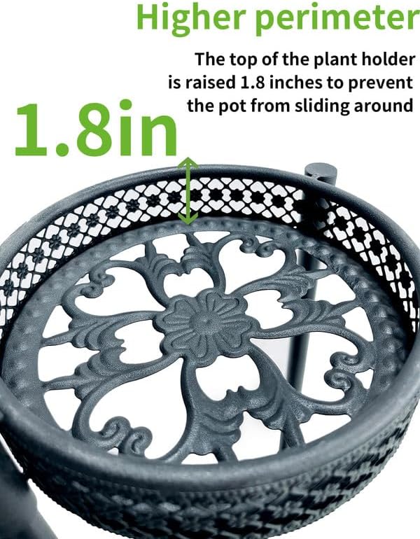 - 【7.9-inch Floral Openwork Wide Trays & Double-Rimmed Hollow with Drainage】The large plant stands have each tier features 7.9-inch wide round trays with double tier raised rims to secure pots up to 7.3 inches and prevent tipping and spills & The hollow and floral openwork design ensures breathability and drainage, preventing water from pooling and water pooling and Impacting root health