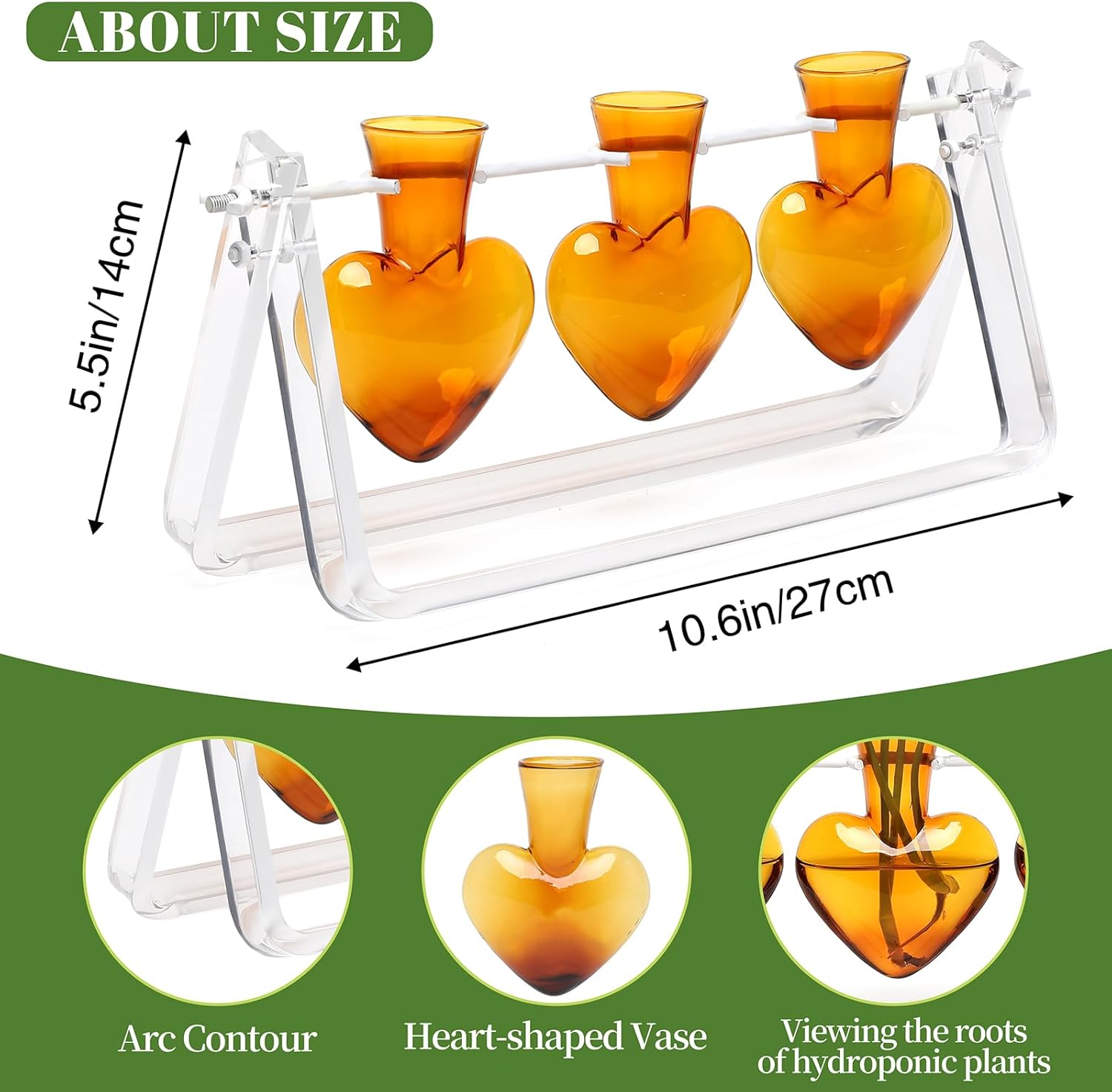 - Perfect Size: 5.5 inches high Γ 11 inches wide Γ 4 inches deep; Each vase: 3.74 inches high Γ 2.75 inches wide; Opening diameter 1 inch. The size is just right, comes with all accessories and is easy to install. (Note: Plants not included)