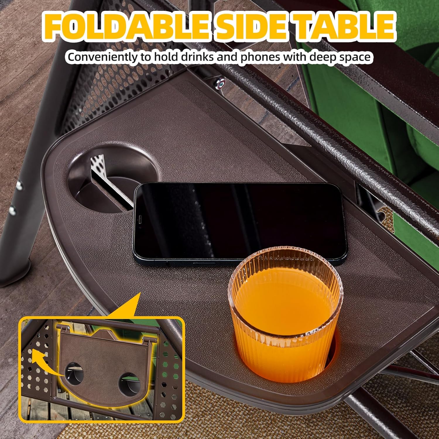3-seat Patio Swing with Canopy,Convertible Outdoor Swing Bed with Thick Cushions, Pillows & Cup Holders, 3-Seat Outdoor Swings Chair for Backyard, Garden, Deck(Green)