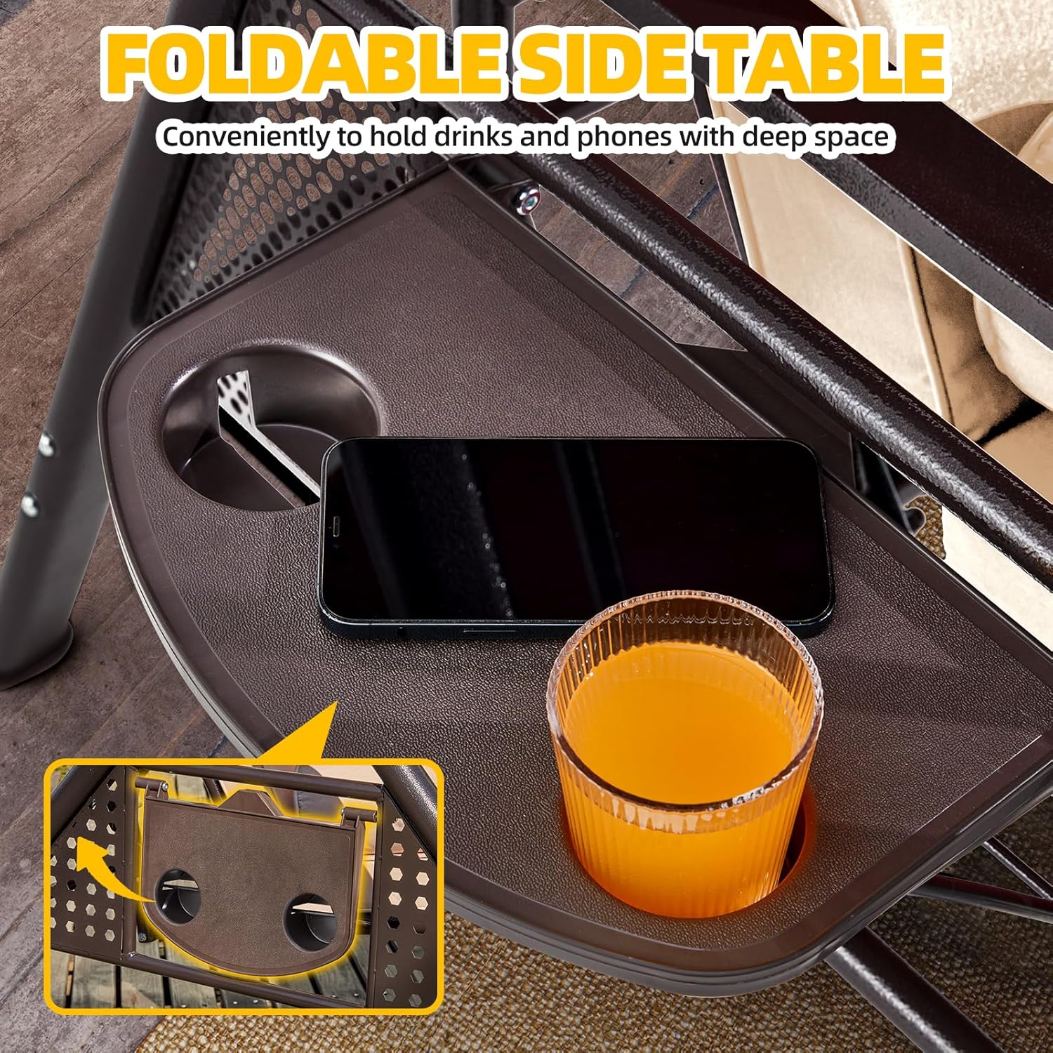 - Convenient Cup Holders & 750 lbs Weight Capacity: Enjoy afternoon tea on your patio swing with canopy! Two cup holders are conveniently placed on each side to keep drinks within reach. Crafted with a heavy-duty steel frame, this patio outdoor swing supports up to 750 lbs, comfortably seating 3 adults β making it the nice outdoor swing for family gatherings