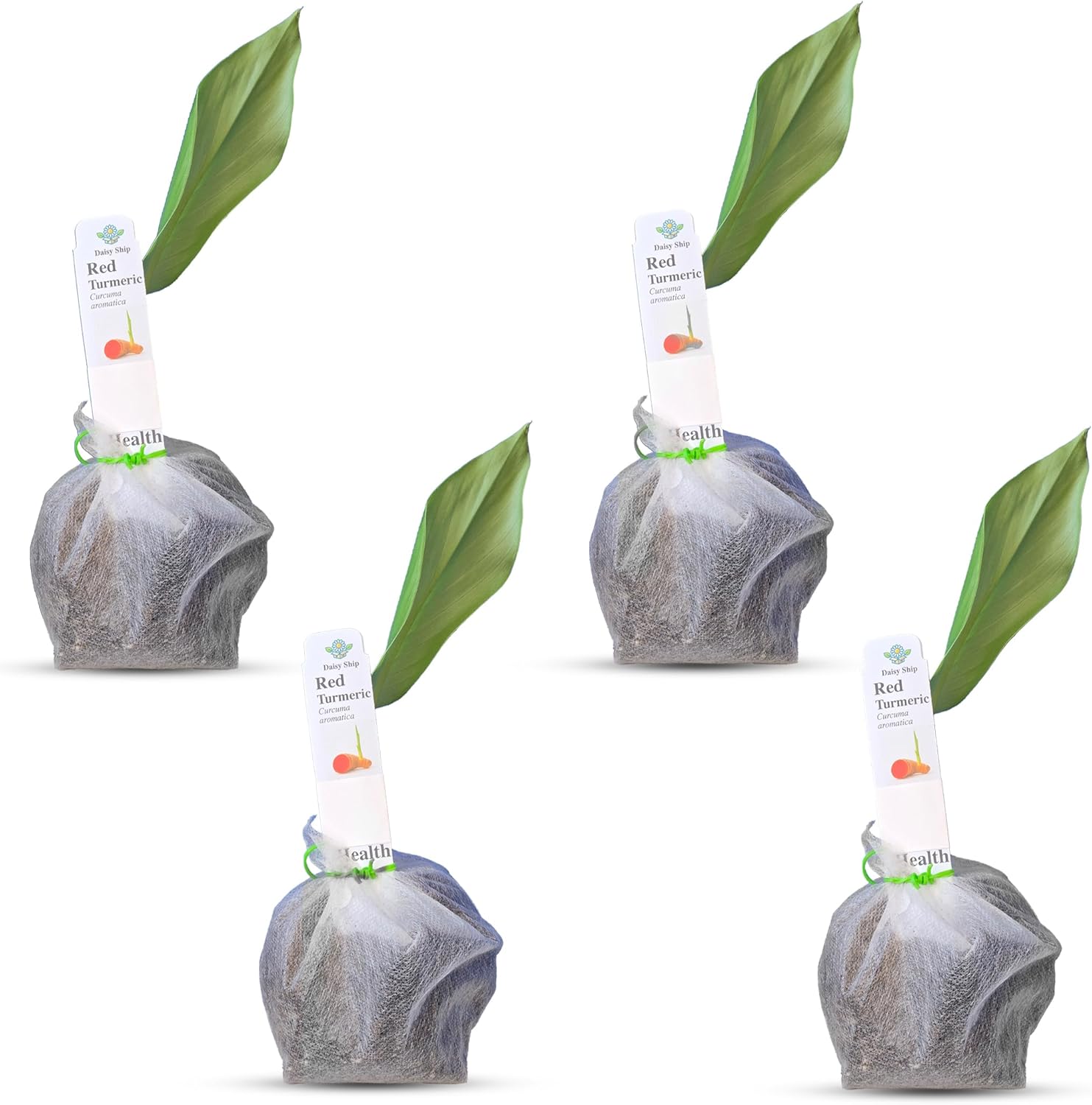 Live Red Turmeric Plants (Curcuma Longa) - Healthy Rhizome and Plant for Home Gardening & Medicinal Use (4 red Turmeric Bags)
