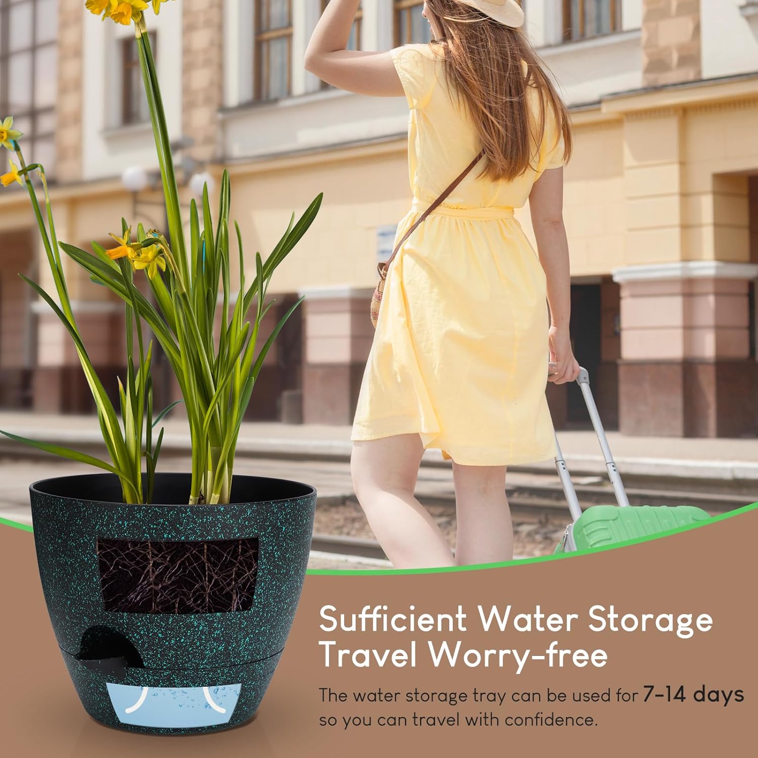 - [DEEP PLANTING SPACE]- 10/9/8/7.5/7 inch Self Watering Pot with deep reservoir makes it easy for when go on vocation that no need someone to come over water plants and flowers.