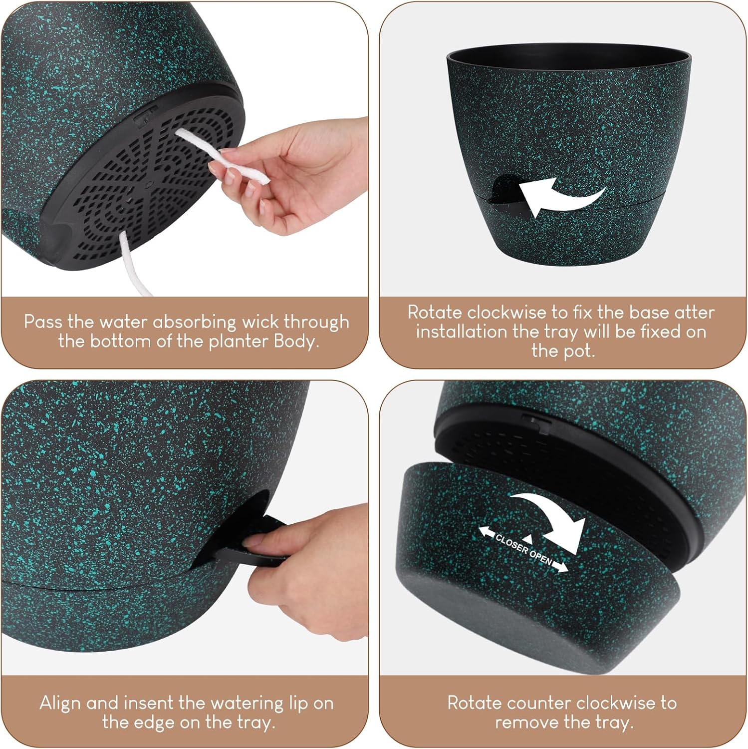 - [Built-In TRAYS] -The planters has a removable watering feeder. You can watering from bottom directly or watering from the top, the excess water will drip into the bottom reservoir.