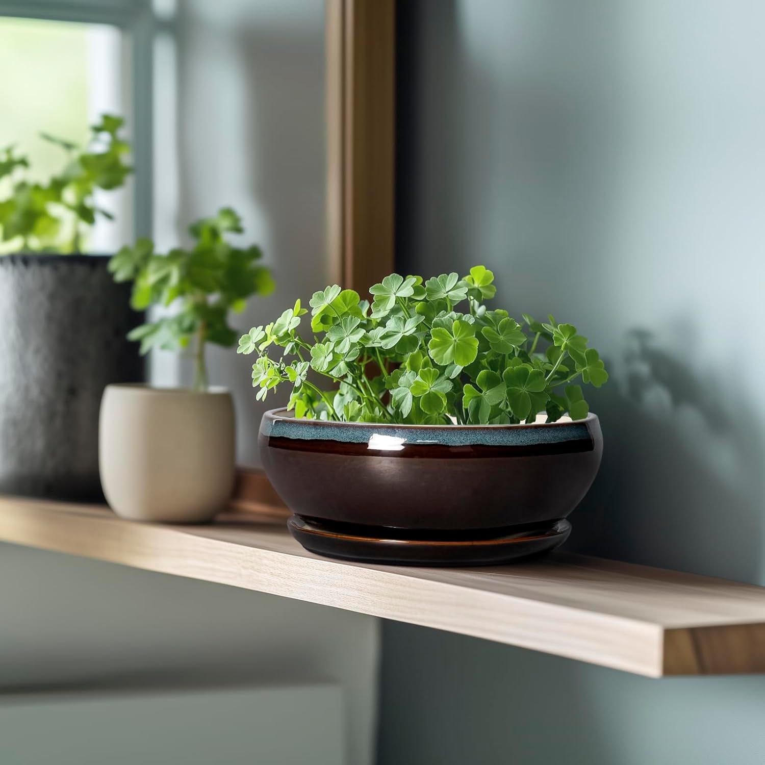 - Plant Pots with Drainage Hole and Ceramic Saucer: The bottom of the shallow planters has drainage hole and a matching ceramic plant saucer to collect excess drainage and soil overflow, keeping plant root cared and your indoor tidy