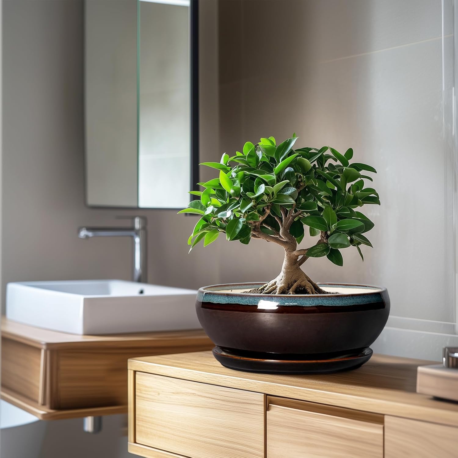 - Suitable for A Variety of Plants: This 10 inch plant pot are great for bonsai, ficus bonsai, succulents, orchid, cactus, herbs, aloe vera, basil plants, mint plants, rosemary plant, jade plant, azalea, pothos plants, agave plants, schefflera plants, etc