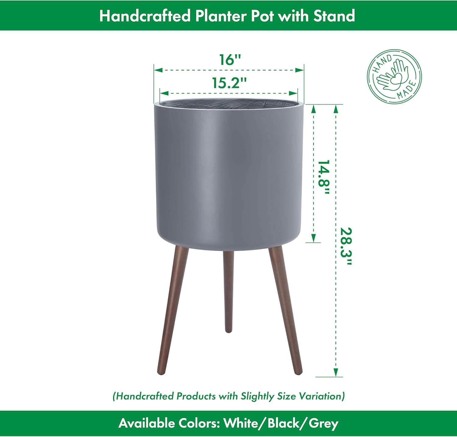 - XX-Large Pot with Stand Set: planter size: 16 inch; pot inner diameter 15.2 inch; pot with stand total height: 28.3 inch.