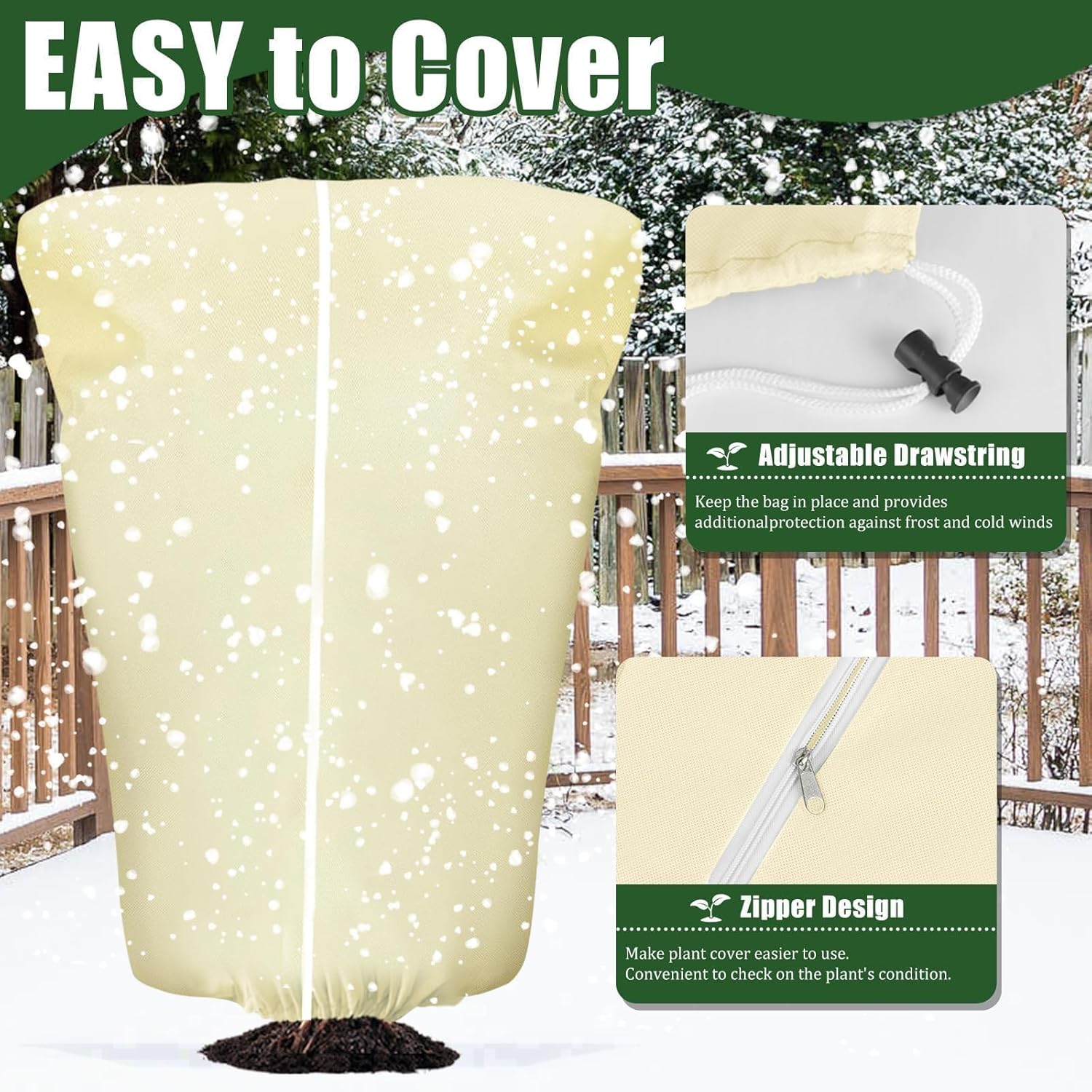 4 Pcs Plant Covers Frost Protection Bag 71" x 47" Winter Reusable Plants Jacket with Drawstring Shrub Protection Wraps Bags Frost Blanket for Winter Outdoor Garden Plants