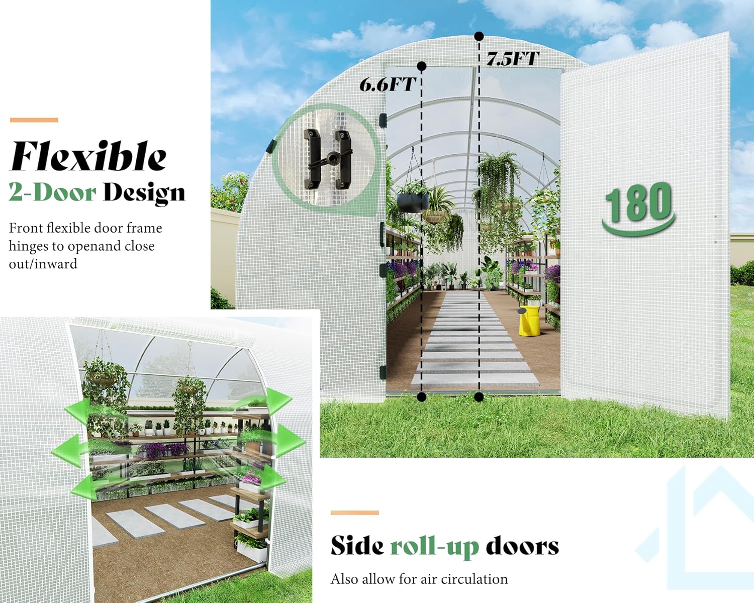 - Swing Door Design: Our greenhouses for outside showcases an lockable hinged door, offering enhanced security and accessibility. And the rolling door can be opened from the side for more convenient access