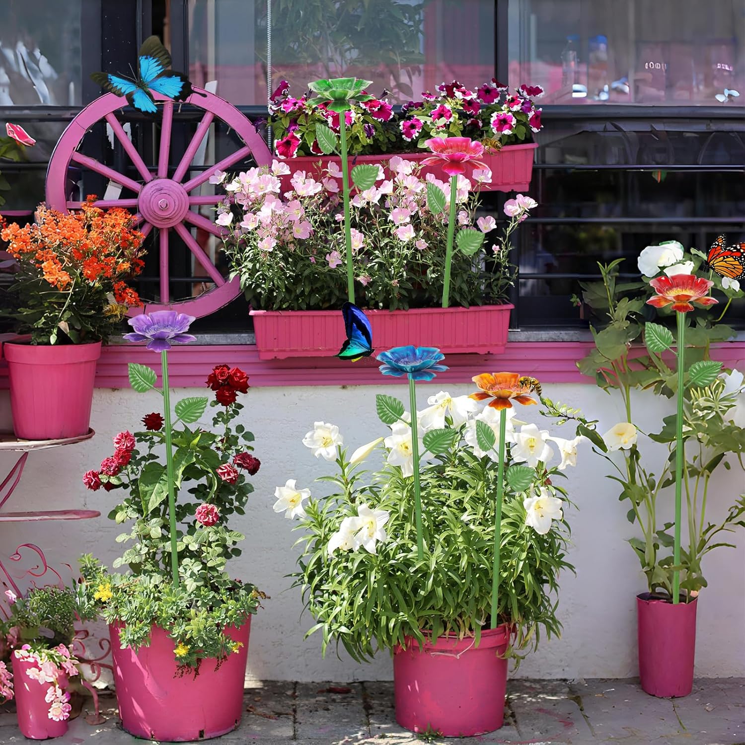 - Beautiful garden decor: The metal garden butterfly feeders for outdoors can easily cope with various weather conditions and is suitable for all-season use. After assembly, insert the base into the garden soil and place it in the garden area where bees often appear. Adjust the height of each watering station to create a charming and layered garden landscape.