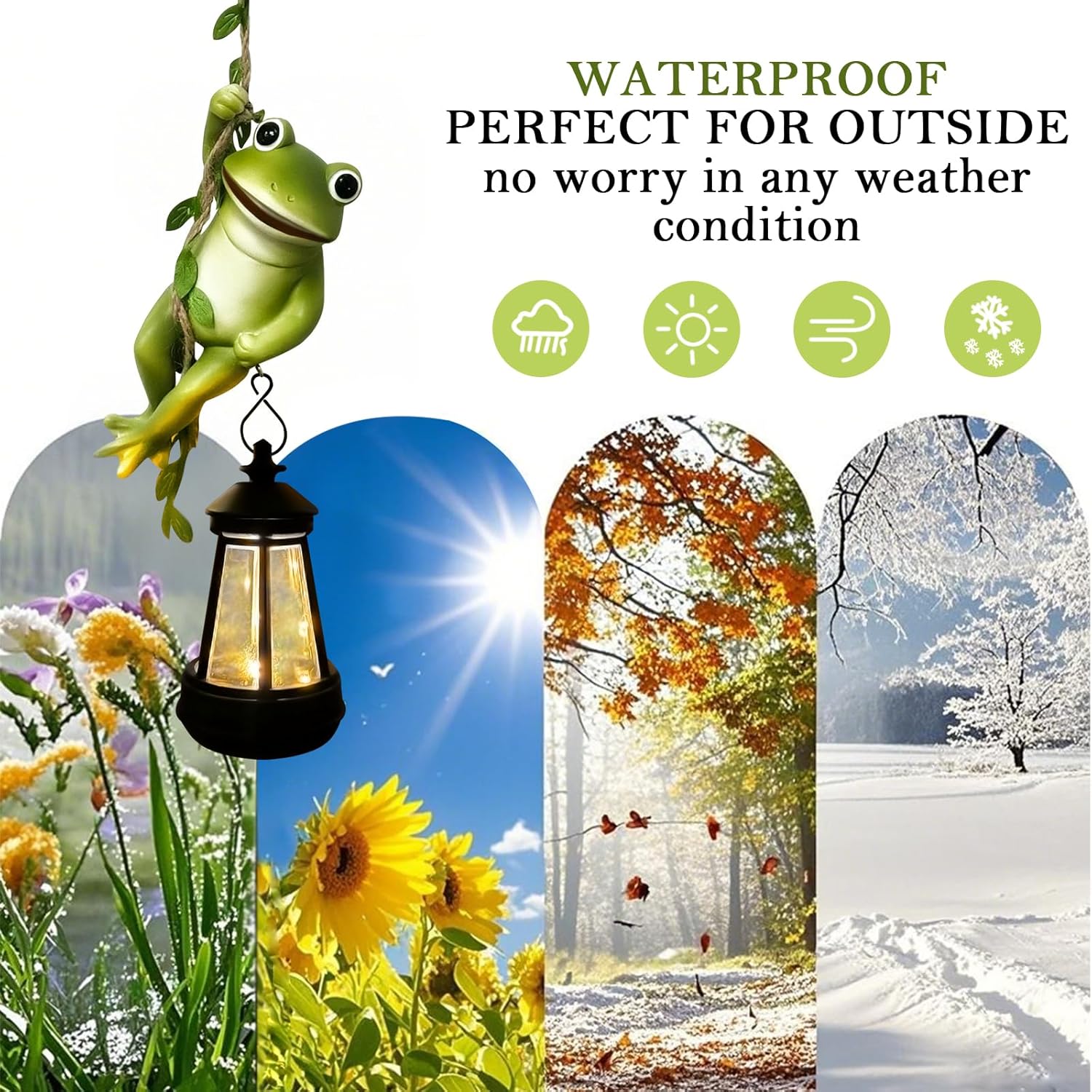 - 【Cute Climbing frog garden sculpture for wide use】- Total length 23.62 inch(60cm). The frog outdoor hanging decor in a vivid appearance, clutches a vine and holds a solar lantern. The vine comes with an “S” hook on the top, ensuring you can hang the solar garden statue anywhere you like to leave a lasting impression on your guests. The outdoor solar statues are perfect accents for Patio/ Home Windows/ Front Porch/ Backyard Decor, House Fences or Tree Branch Decorations outside.