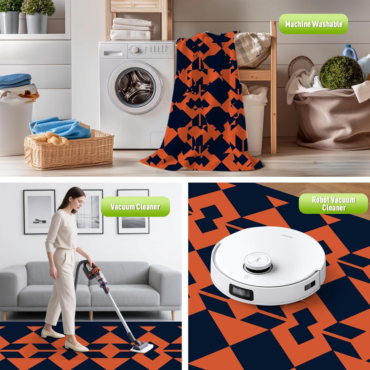- Stain-Resistant & Easy to Clean: This waterproof, stain-resistant, and quick-drying outdoor rug is made from recycled plastic grass weaving. Dirt, hair, and spills can be easily removed by hosing it down or shaking it off. For deep cleaning, simply wipe it with a damp cloth and mild soapy water, rinse, and let it air dry in minutes