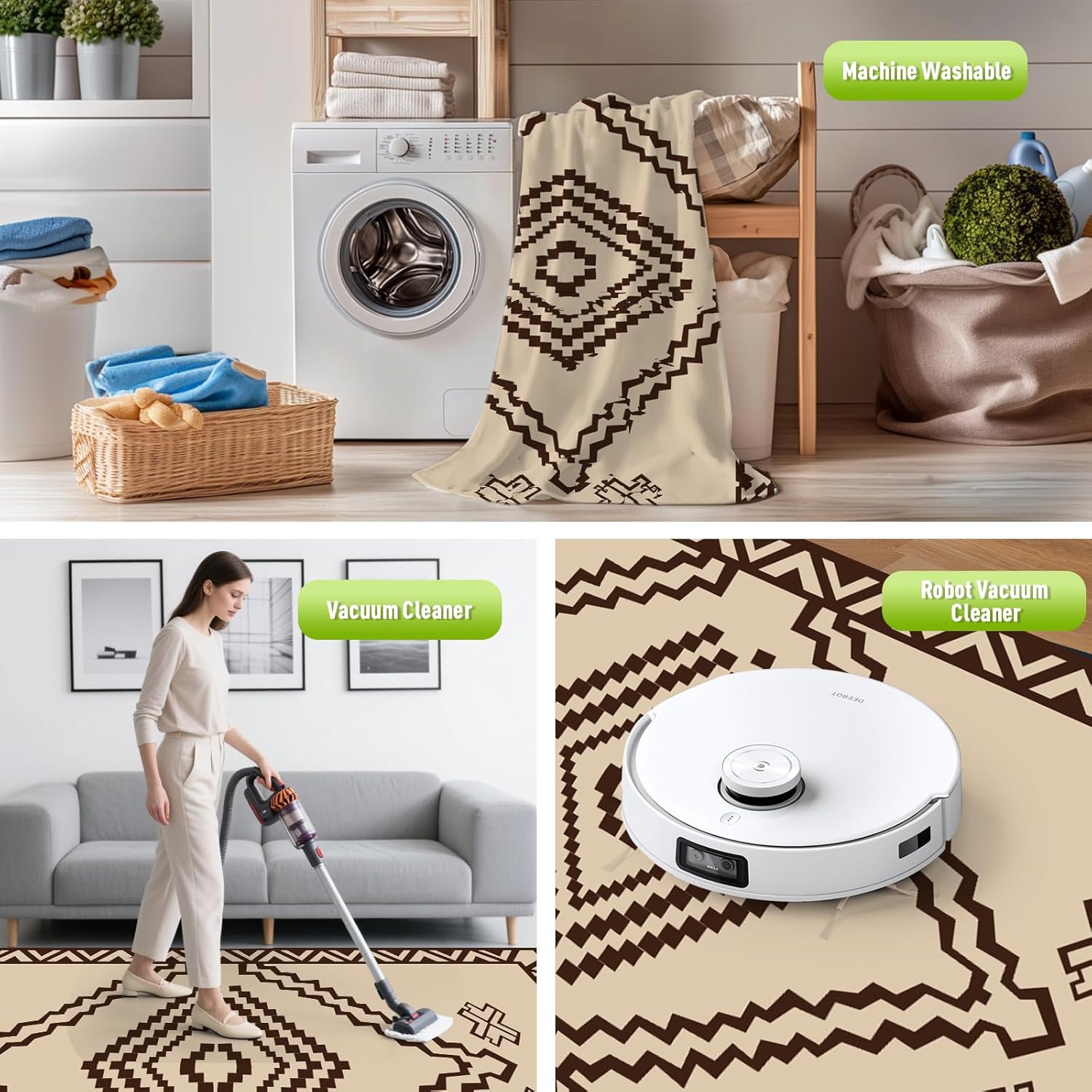 - Reversible Design: This double-sided patio rug features beautiful patterns on both sides, allowing you to quickly flip it over and instantly refresh your patio, porch, backyard, deck, RV campsite, or any outdoor space. A simple way to transform your style effortlessly