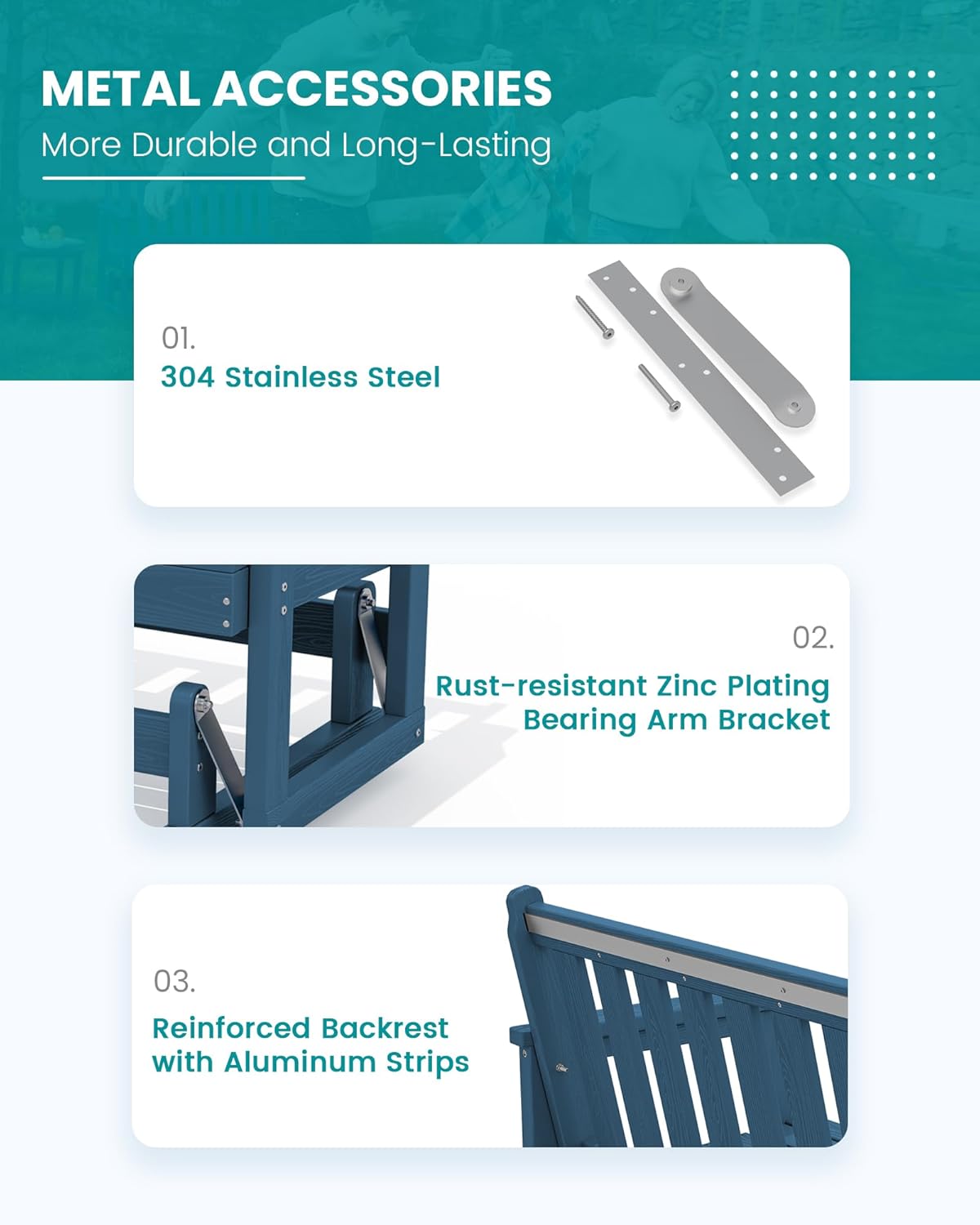 SERWALL Outdoor Glider Bench, HDPE All Weather Swinging Bench for Outdoor Porch Garden, 660LBS Capacity, Navy Blue