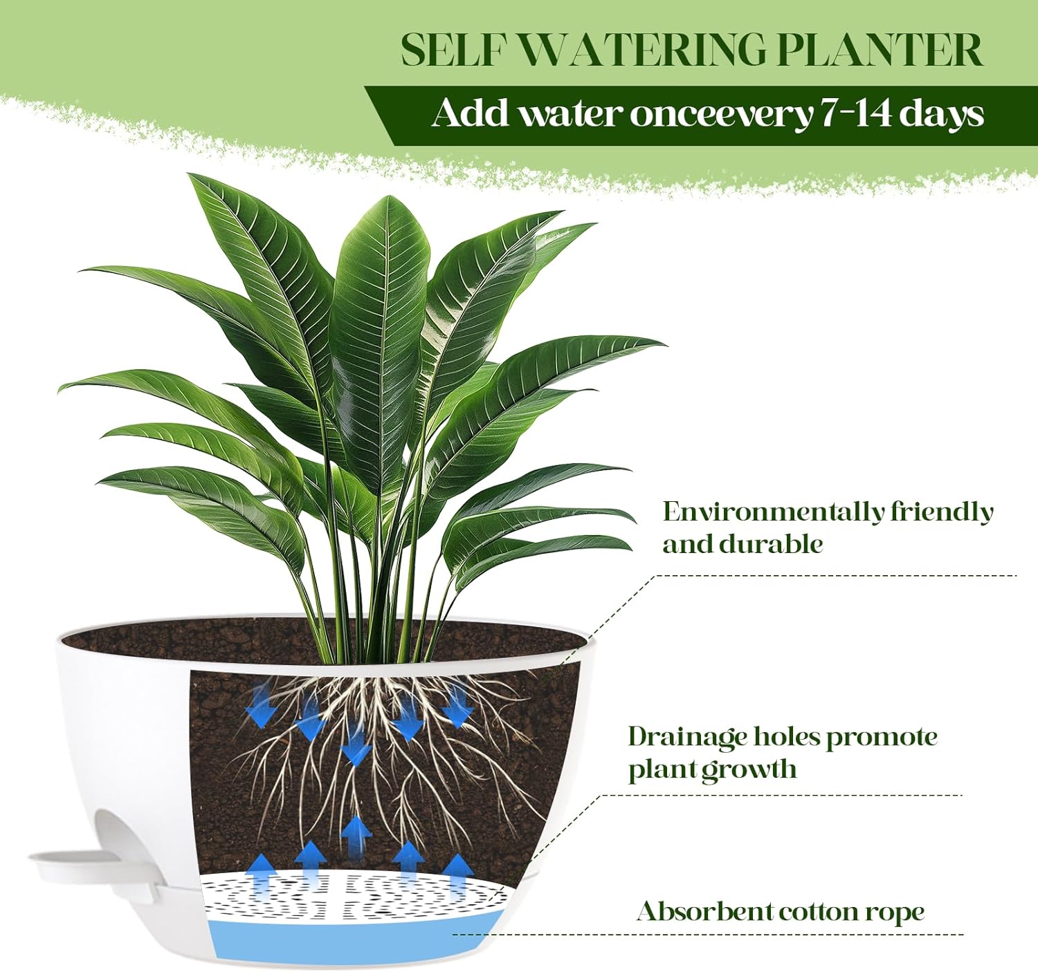 - β 2 Large Self-Watering Planters: Double the value! Includes two 10-inch wide plastic hanging planters with built-in self-watering reservoirs to reduce the need for frequent watering and keep plants healthier.