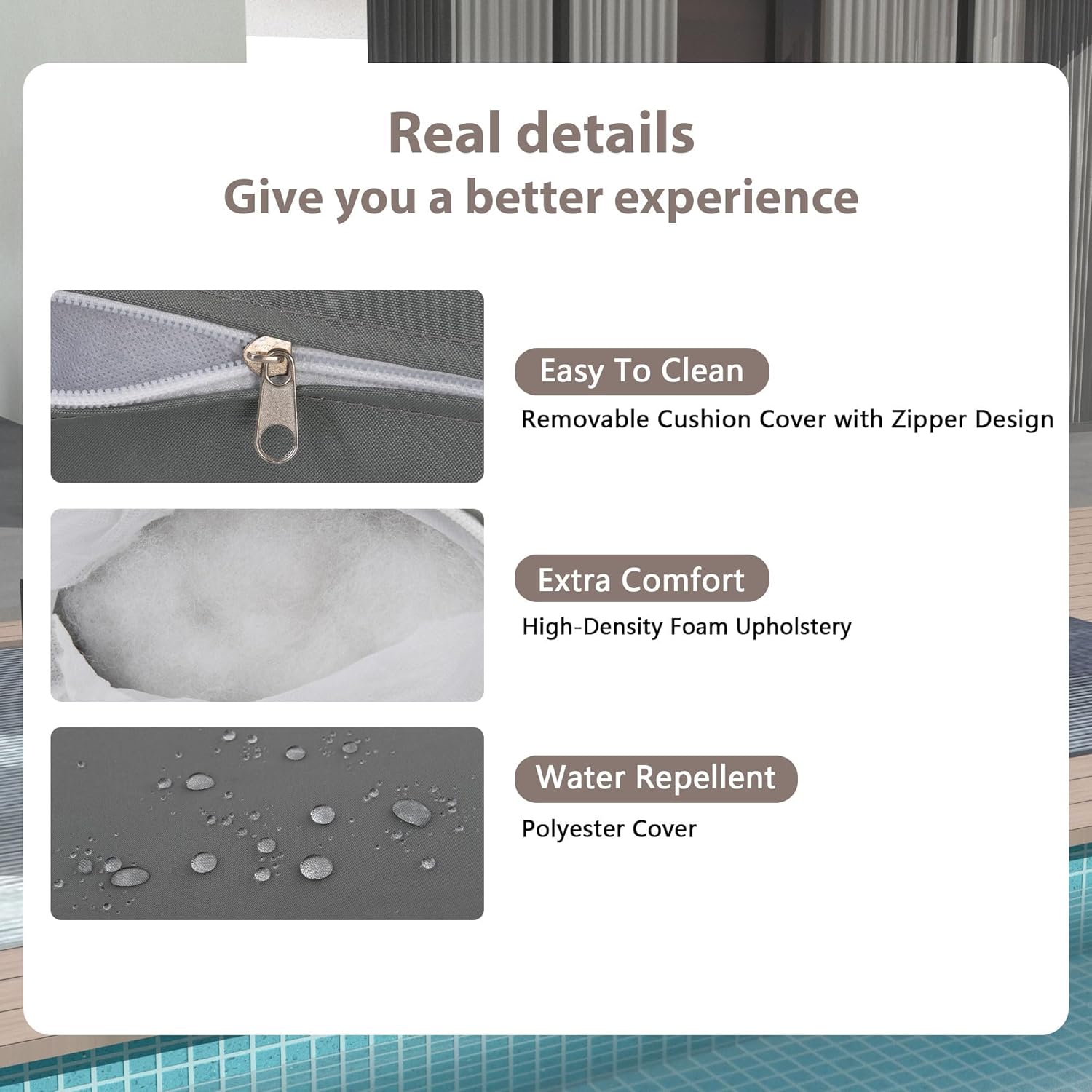 - ăModular Design & Deep Seatingă Freely arrange arm/armless chairs to fit any space (patio, poolside, garden). Extra-thick cushions with removable covers for easy cleaning