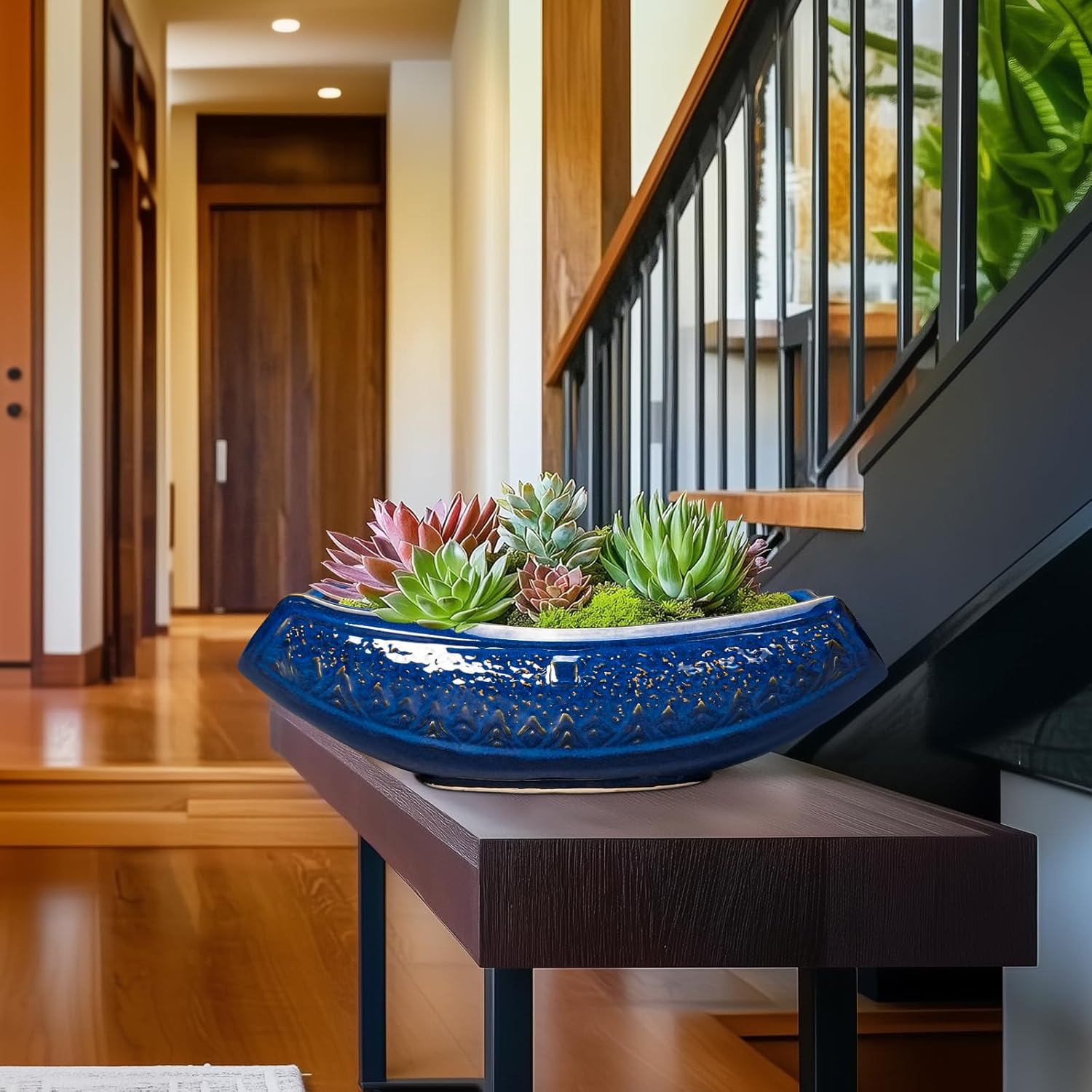 - Versatile Plant Compatibility: This blue planter is suitablie for various plants, including bonsai tree, succulents, orchid, cacti, aloes, money tree, zz plants, ivy, bromeliads, lemon tree, jasminum spp, mentha spp, mini ficus, pothos, and more