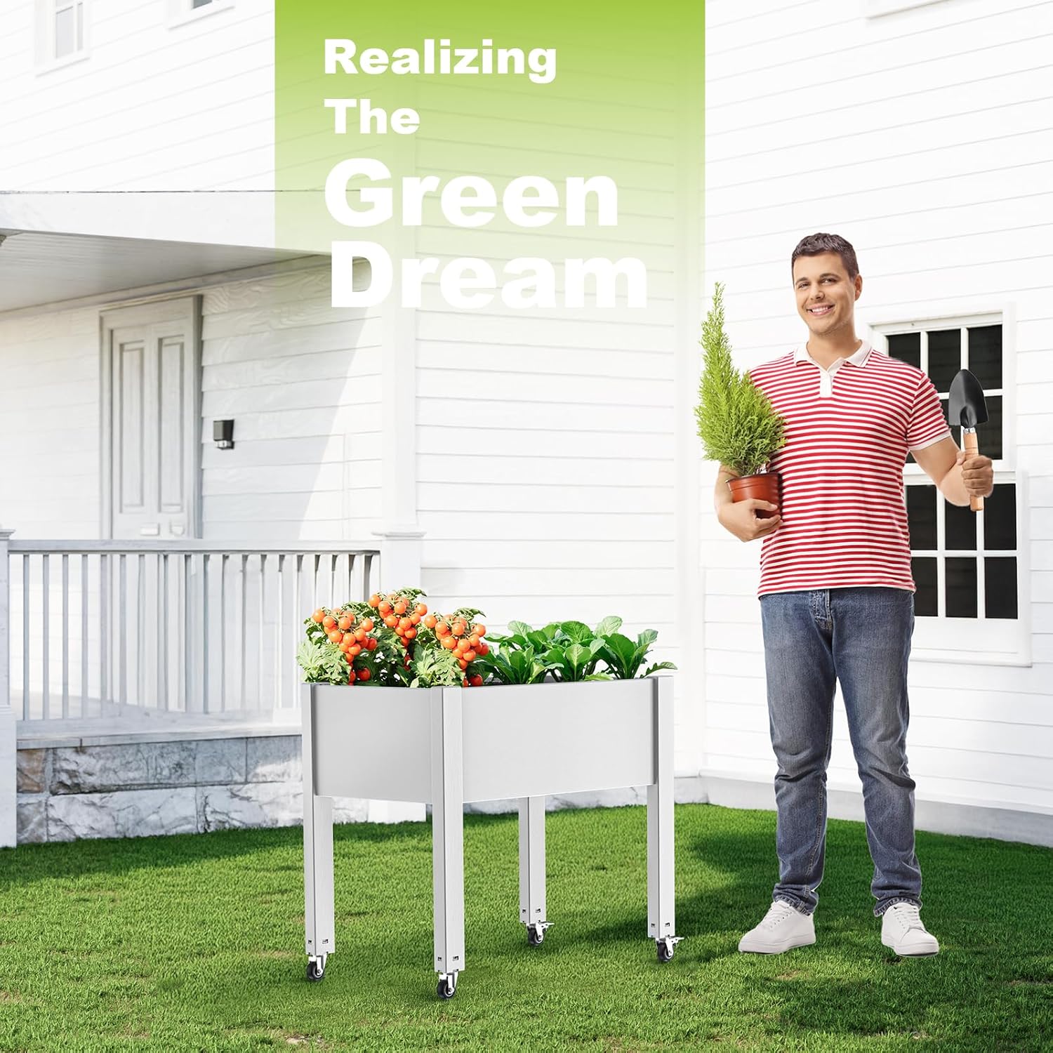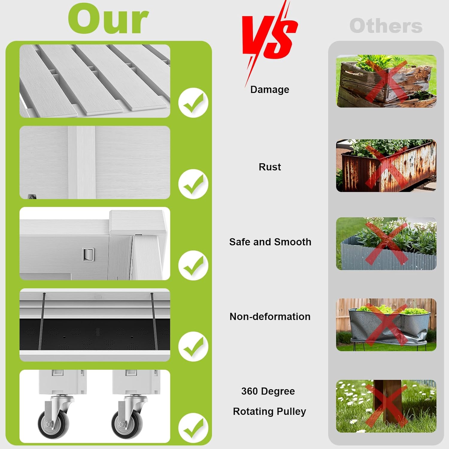- EASY MOBILITY & STORAGE: Equipped with 360Β° rotating wheels, this planter box can be effortlessly repositioned to maximize sunlight exposure. The sturdy leg design provides additional stability, making it both easy to move and securely placed when needed.
