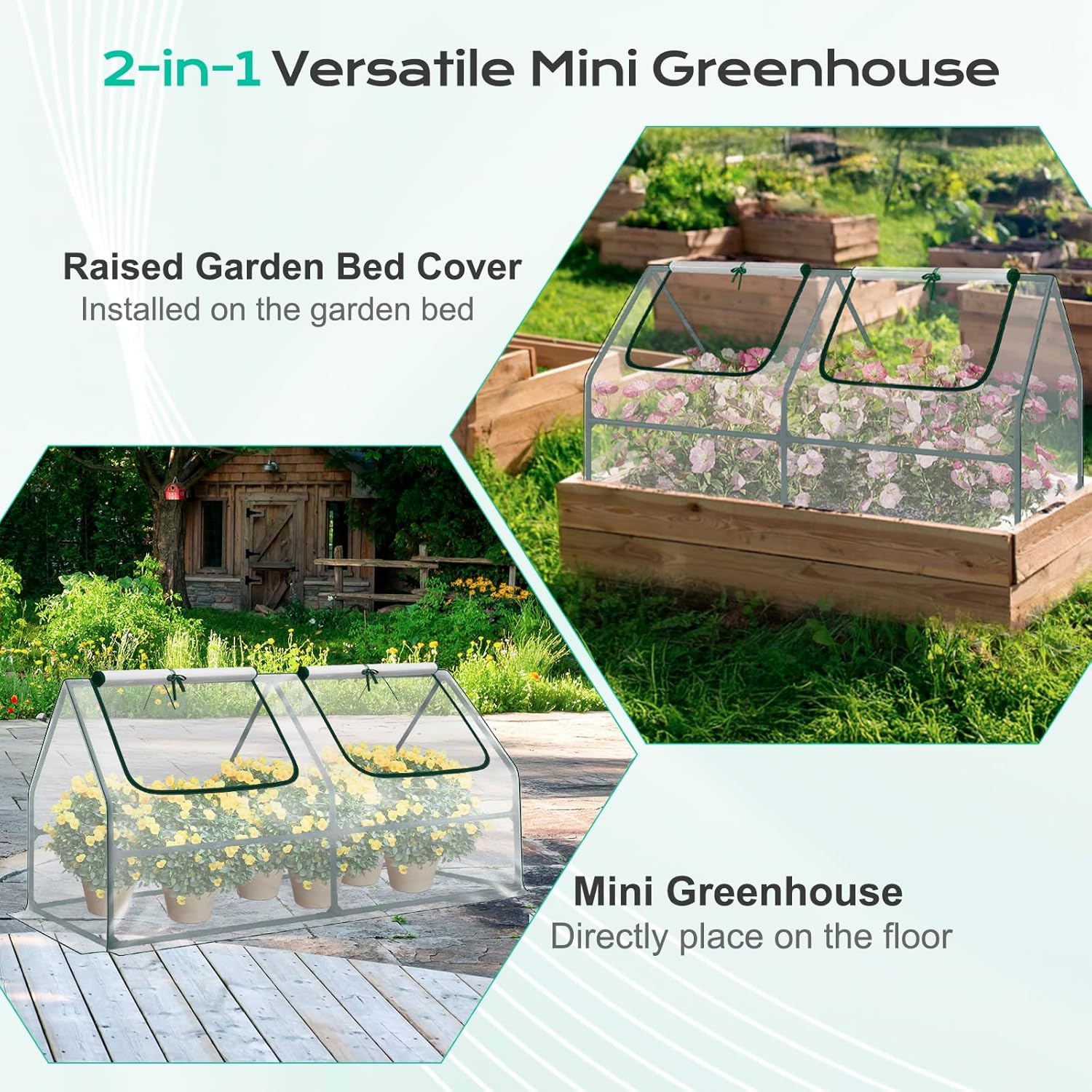 - Versatile Design: Lightweight and tool-free to assemble, this portable greenhouse fits perfectly on balconies, patios, or raised garden beds. Whether youβre germinating seeds indoors or sheltering plants outdoors, it adapts to your gardening needs
