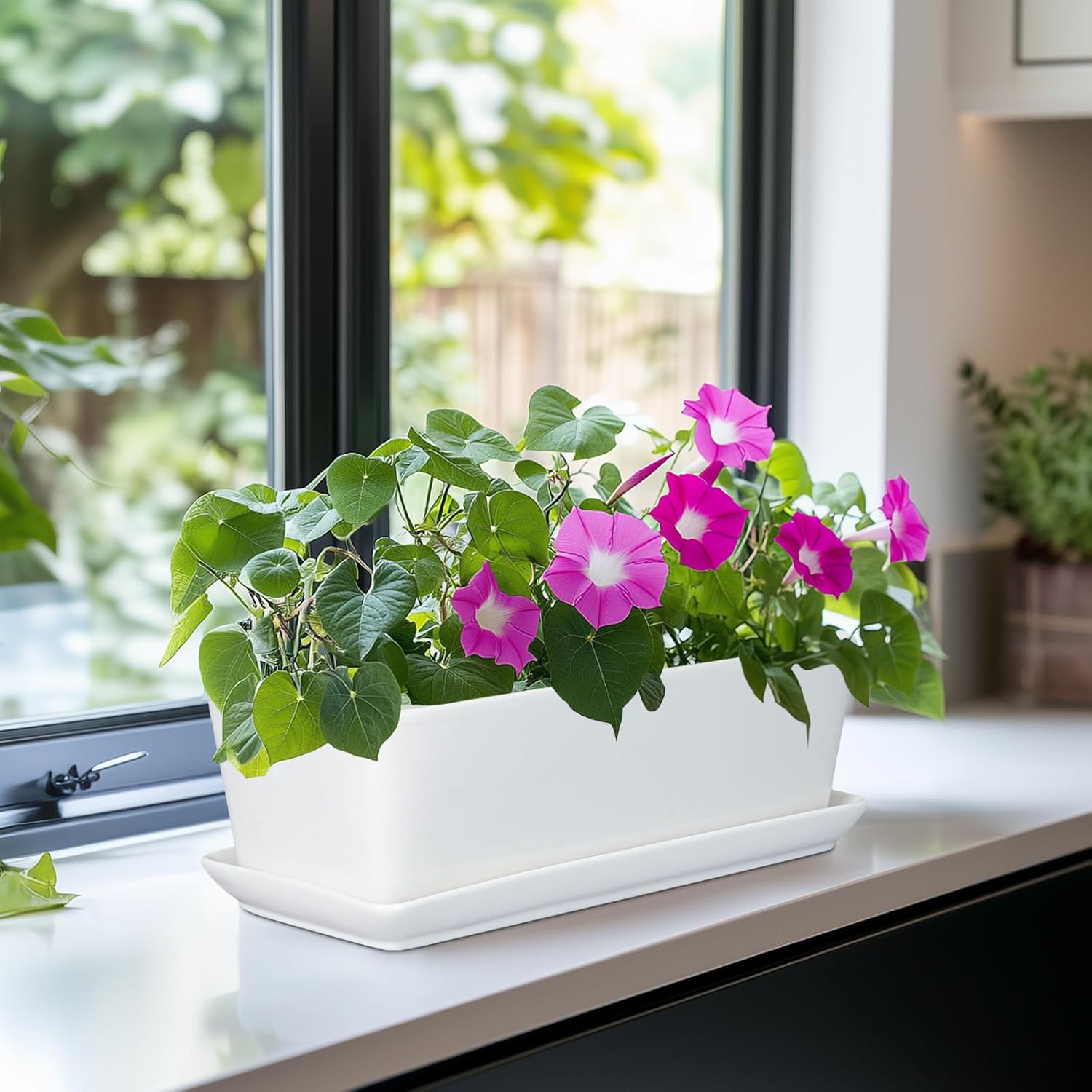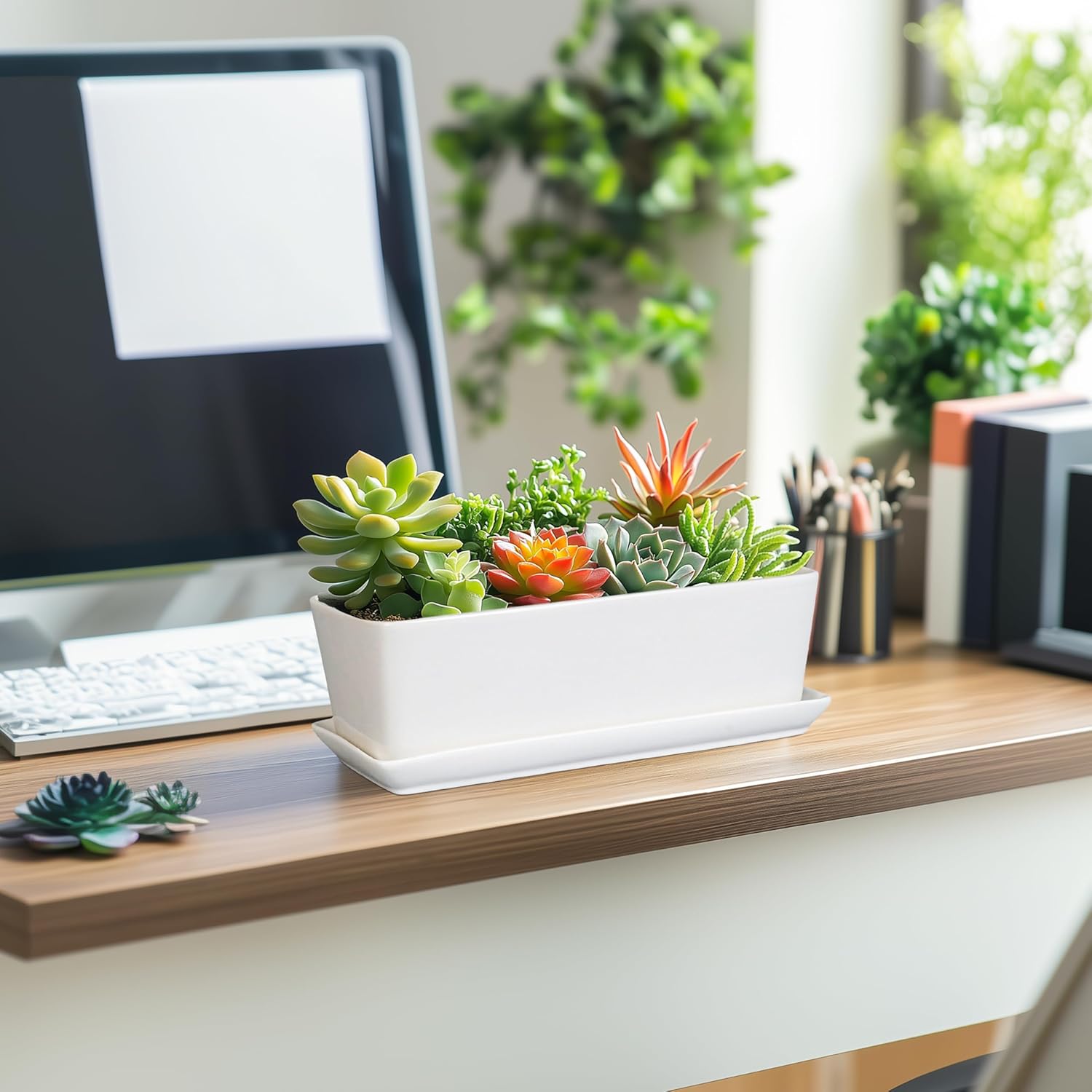 - Elegant Glazed Aesthetics: Beautiful glazed rectangular planter with smooth and glossy glazed finishes for easy cleaning. Very suitable for plant lovers, adding some charm and style to your home