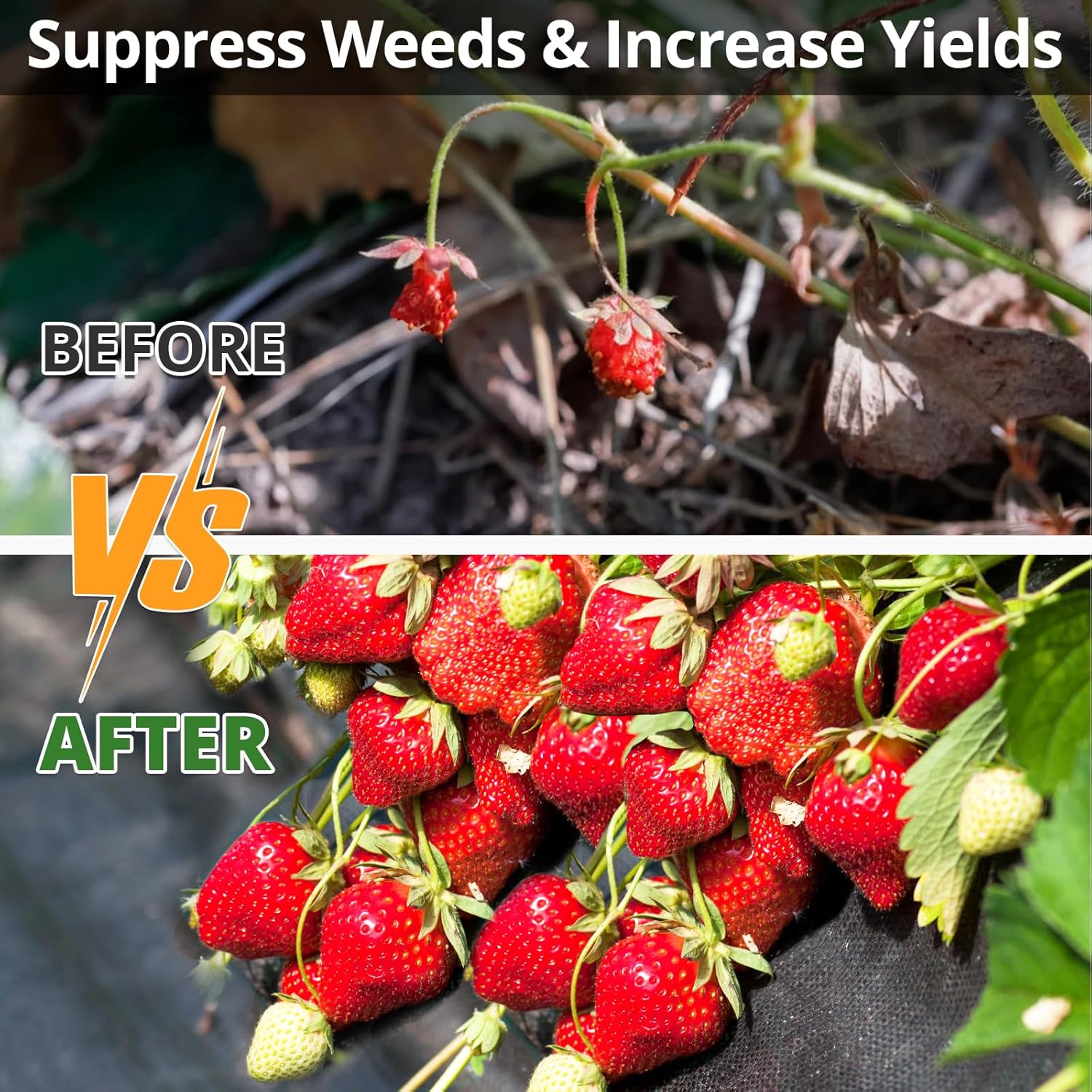 - 【Multi-Scene Adaptability】Whether you're a home gardener or a professional landscaper, this black weed barrier cloth is ideal for a wide range of uses. From paving flower beds and paths to stabilizing driveways to protecting crops on farms or in greenhouses, this versatile fabric can adapt to many landscaping or gardening challenge. Perfect for garden, yard, agricultural, vegetable patch, landscaped areas, orchards, greenhouses, flower beds, sapling plantations, sidewalks, lawns, etc