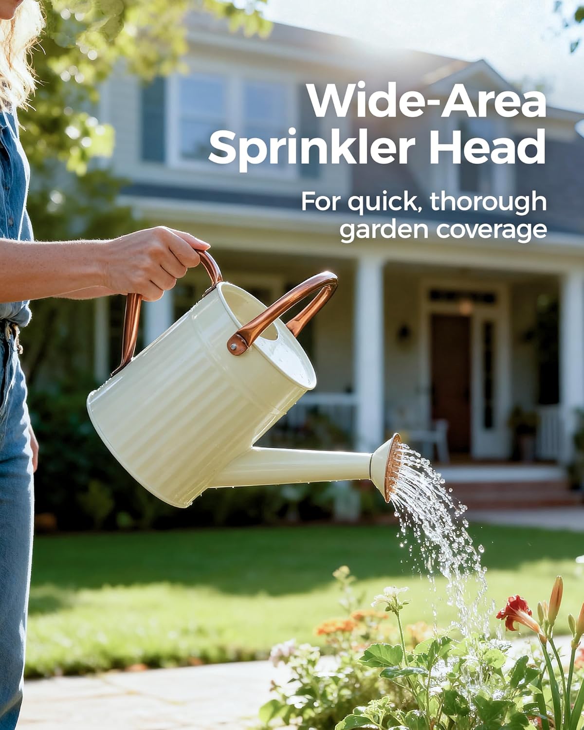 - Vintage Metallic Finish.The elegant bronze & creamy white finish makes the watering can a decorative accent—whether placed in a sunroom, garden shed, or windowsill. It is a chic flower watering can that blends function and aesthetics.